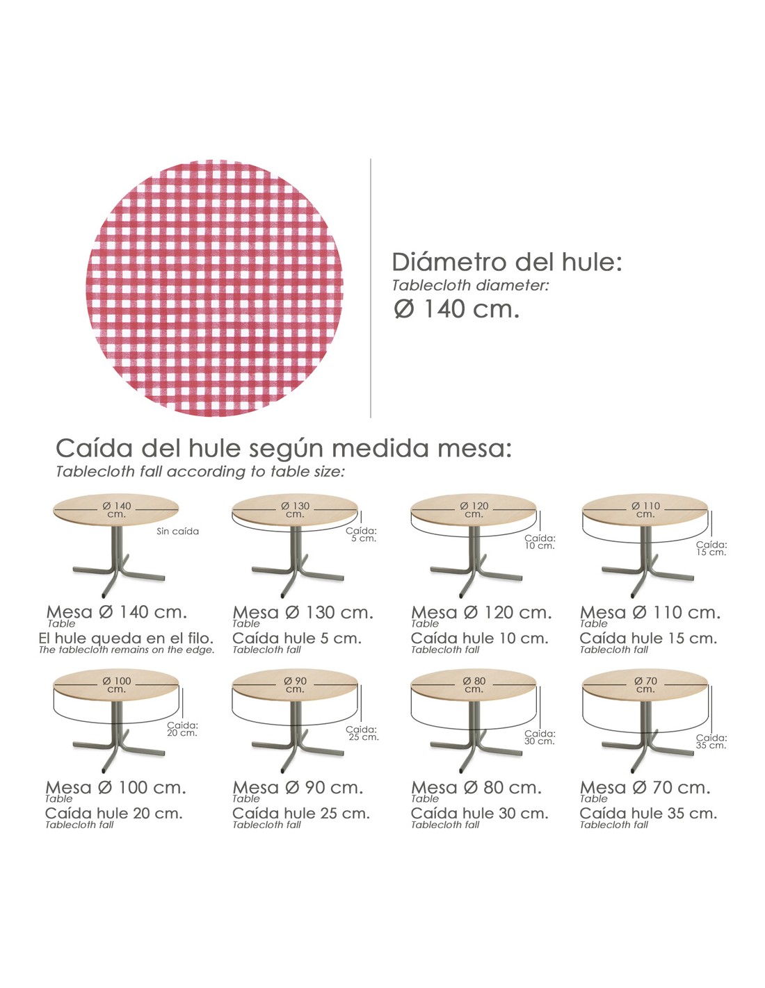 Mantel Hule Redondo Ø140 cm. Cuadros Rojos