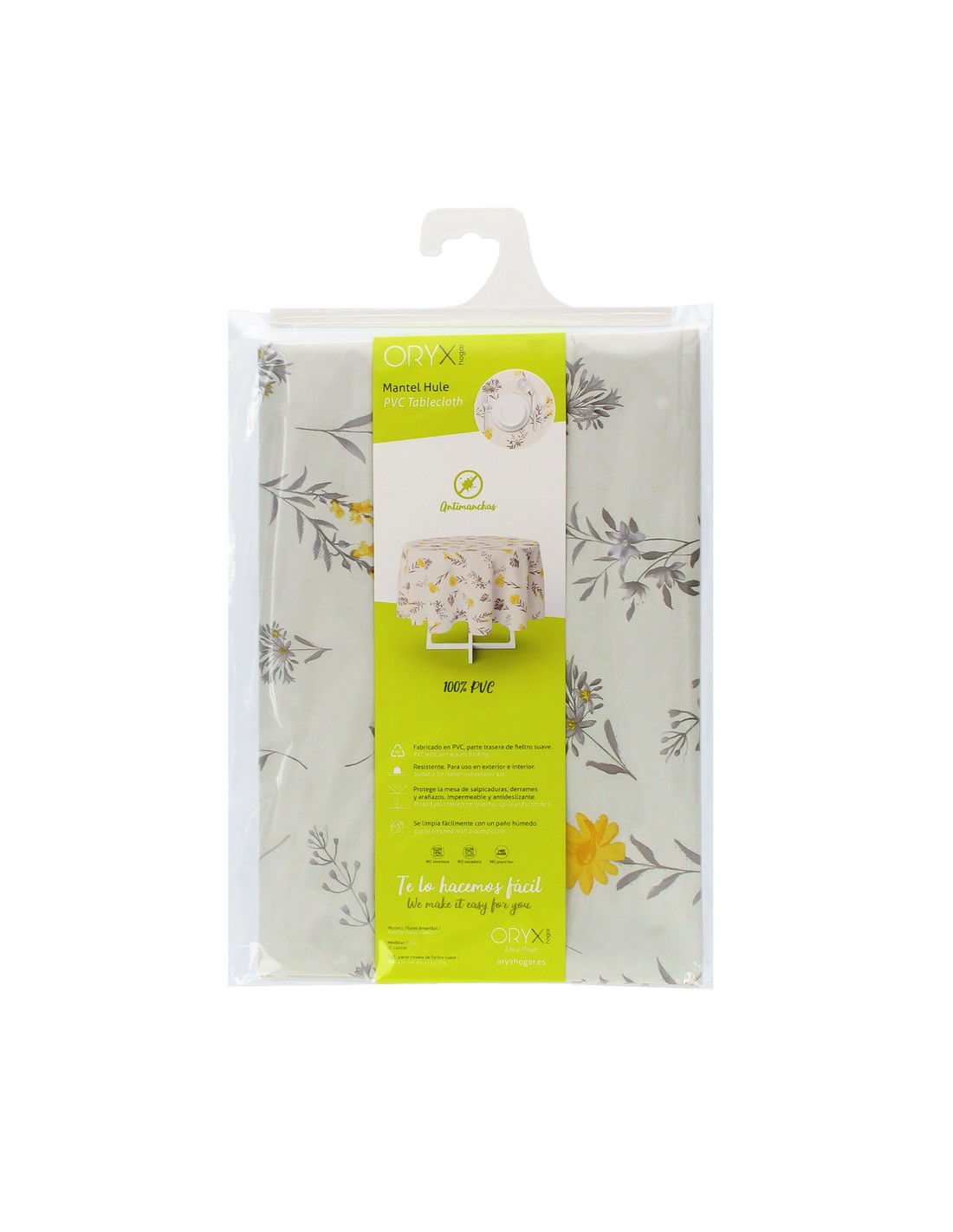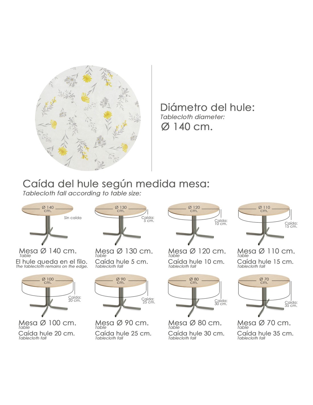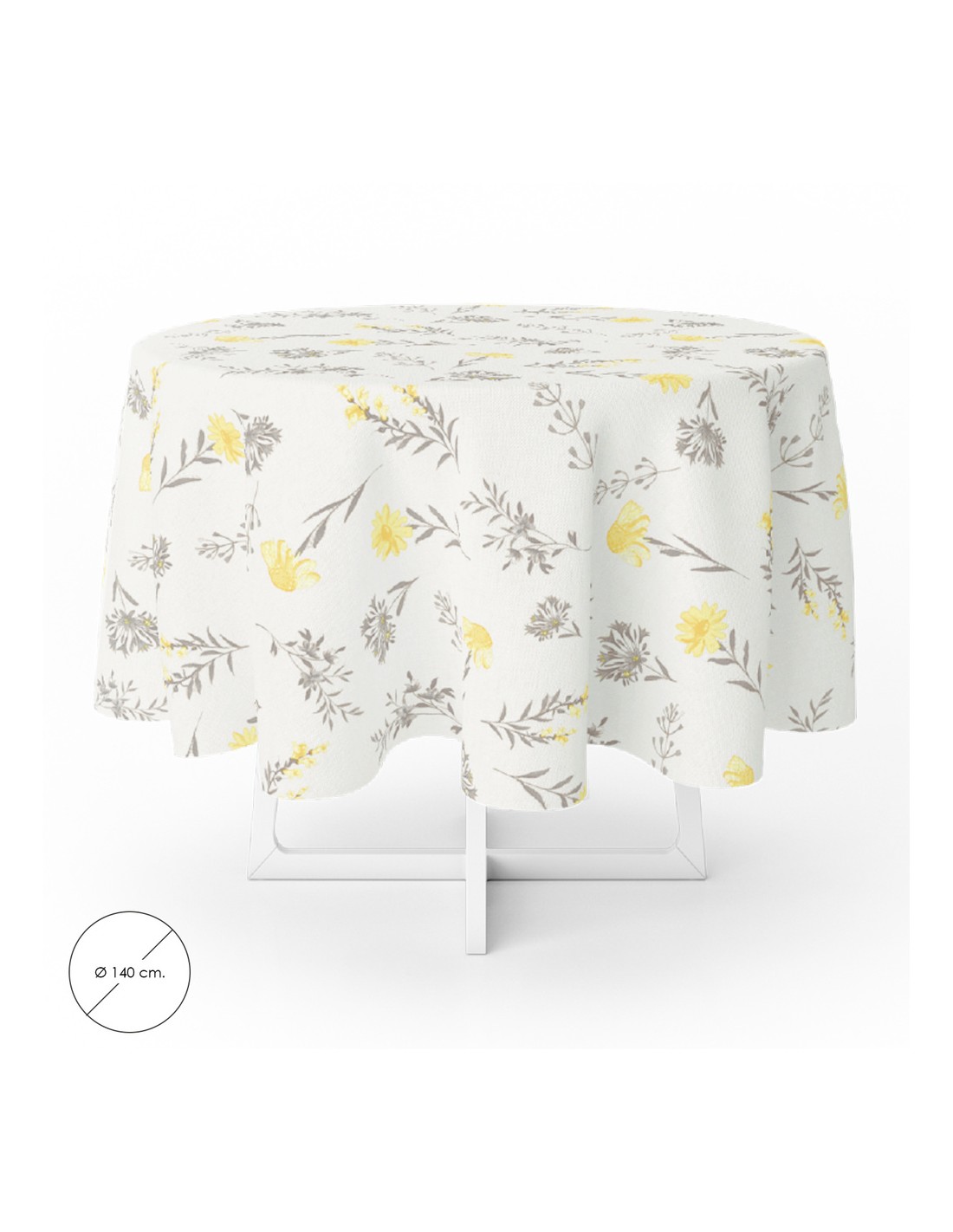 Mantel Hule Redondo Flores Amarillas Impermeable Antimanchas PVC Ø140 cm. Uso Interior y Exterior