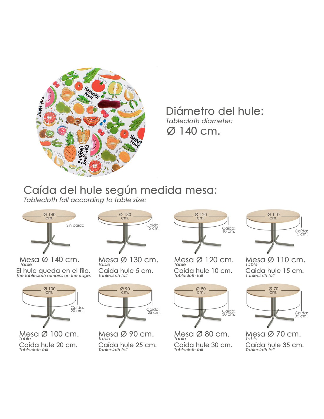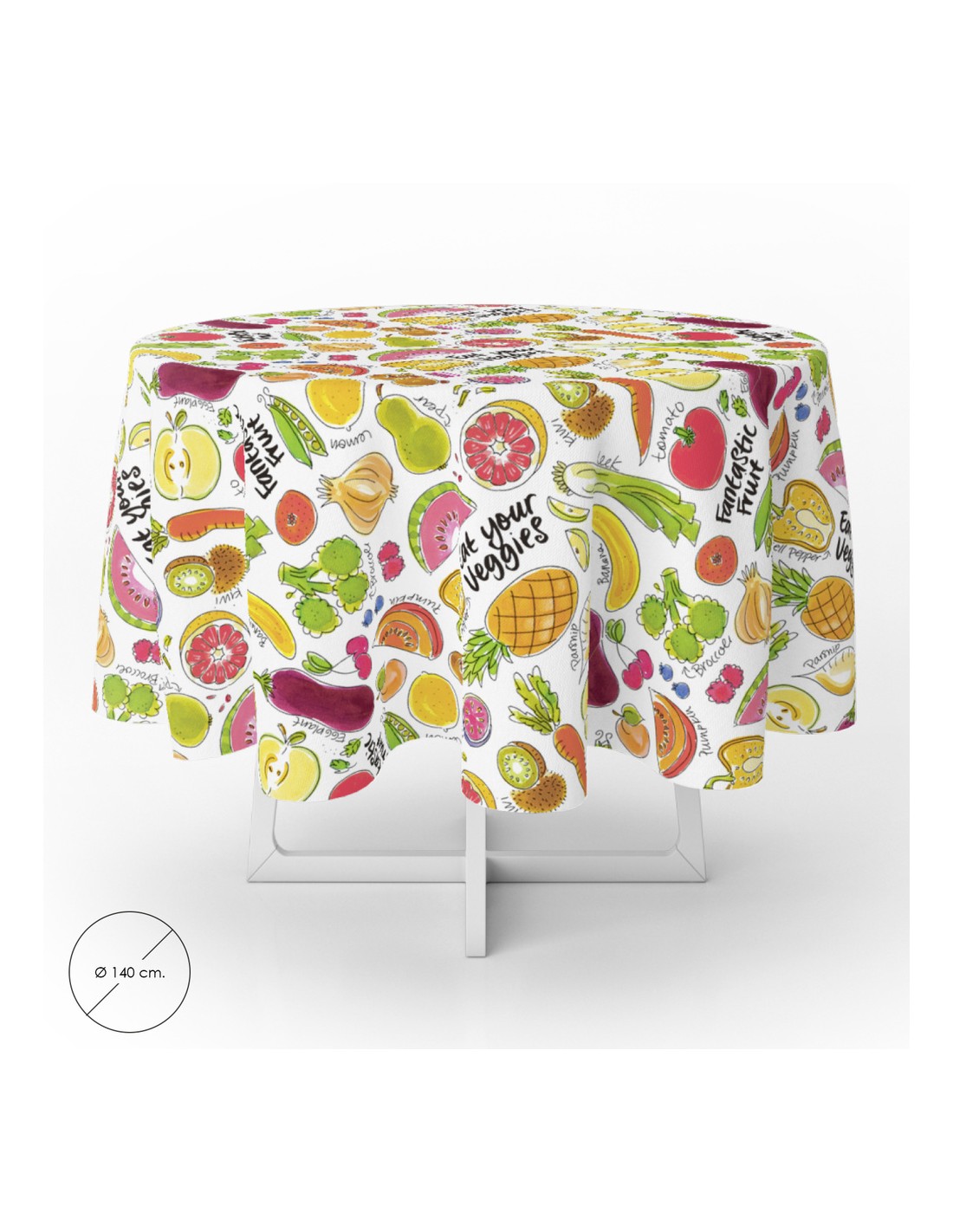 Mantel Hule Redondo Ø140 cm. Fruta Fantasía