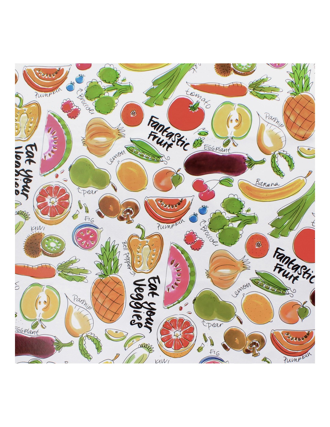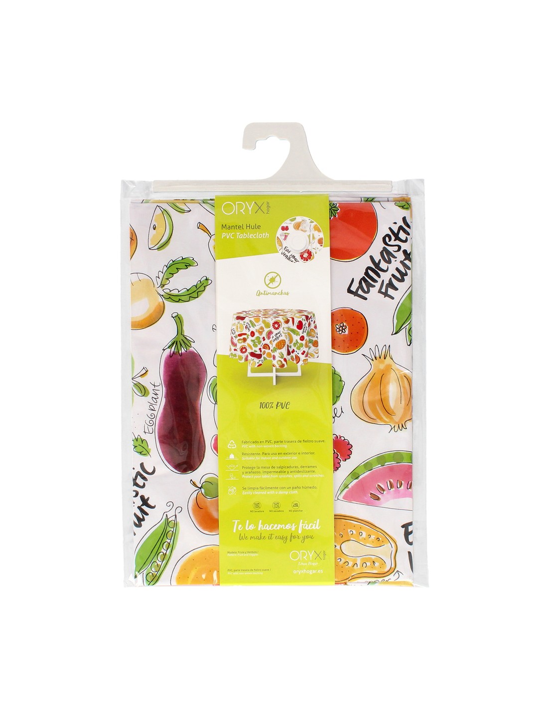 - Mantel Hule estampado en color blanco con estampado de fruta fantasia. Diseño moderno y elegante para cualquier ocasión.