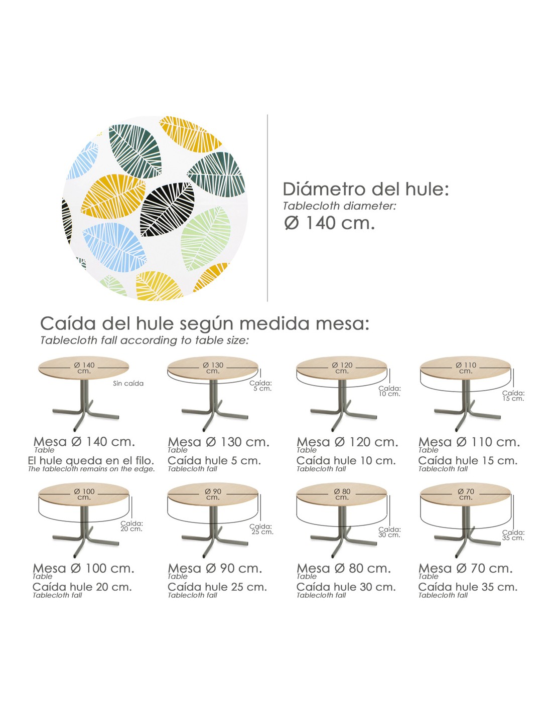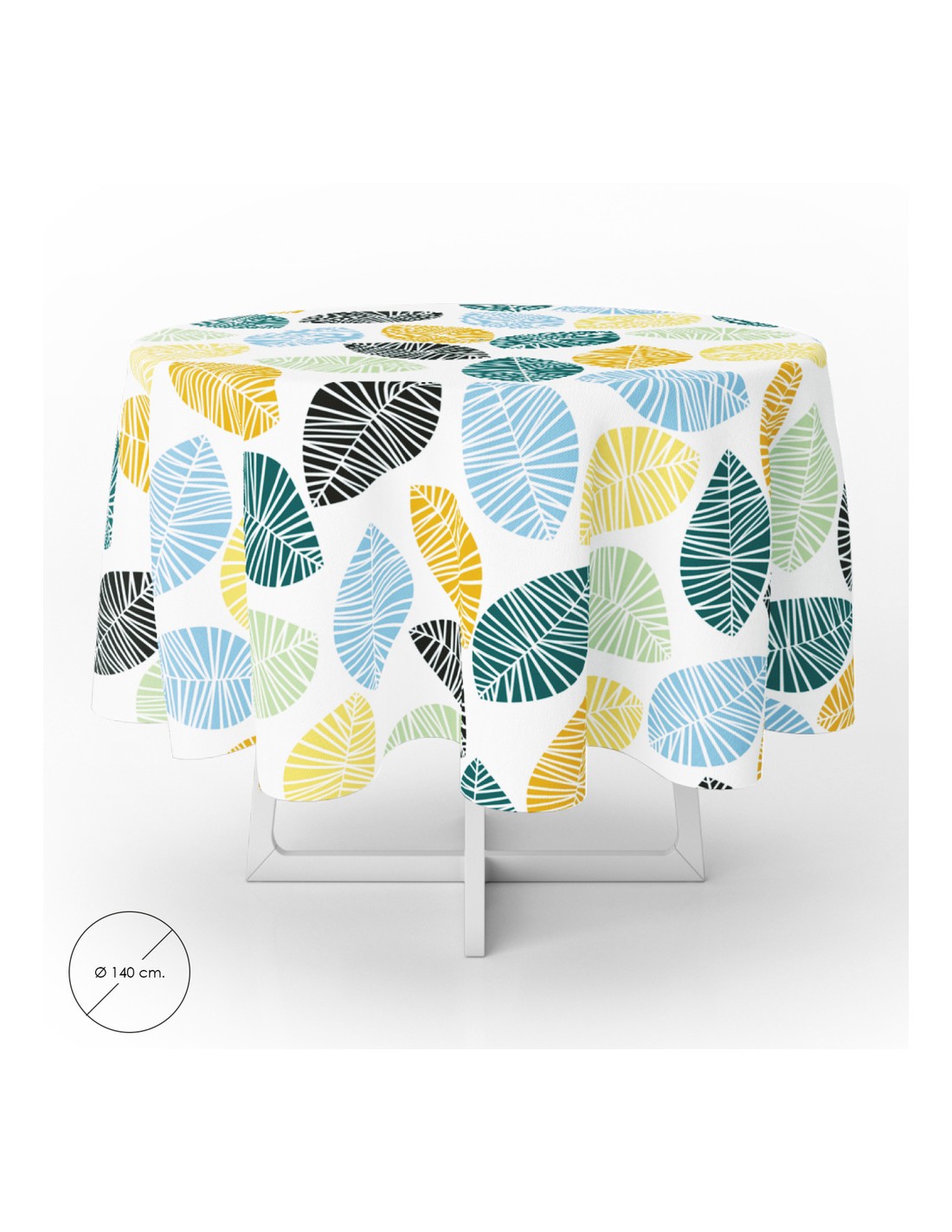 Mantel Hule Redondo Ø 140 cm. Hojas Color