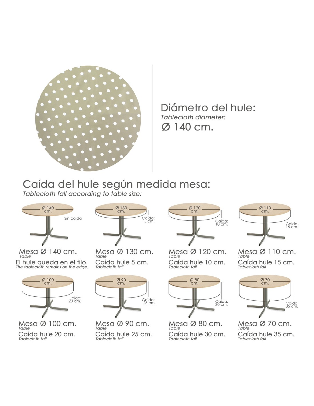 Mantel Hule Redondo Ø 140 cm. Topos Beige