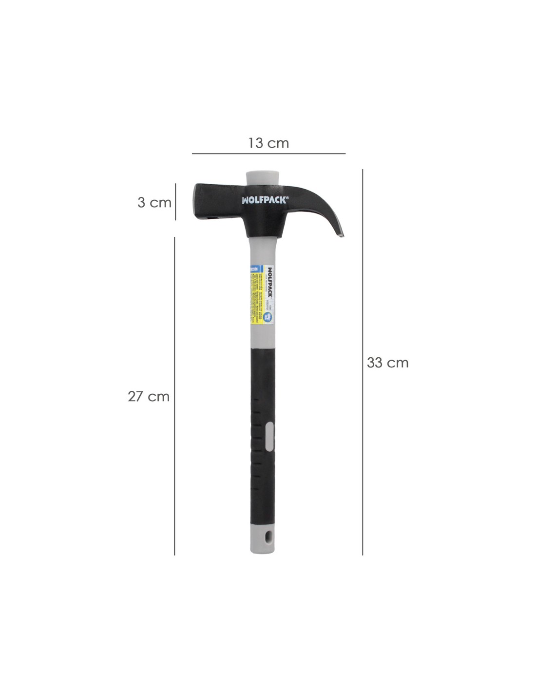 Martillo Uña Mango Fibra Vidrio Mango Fibra Vidrio Con Empuñadura Antideslizante. 600 Gramos 33 cm.