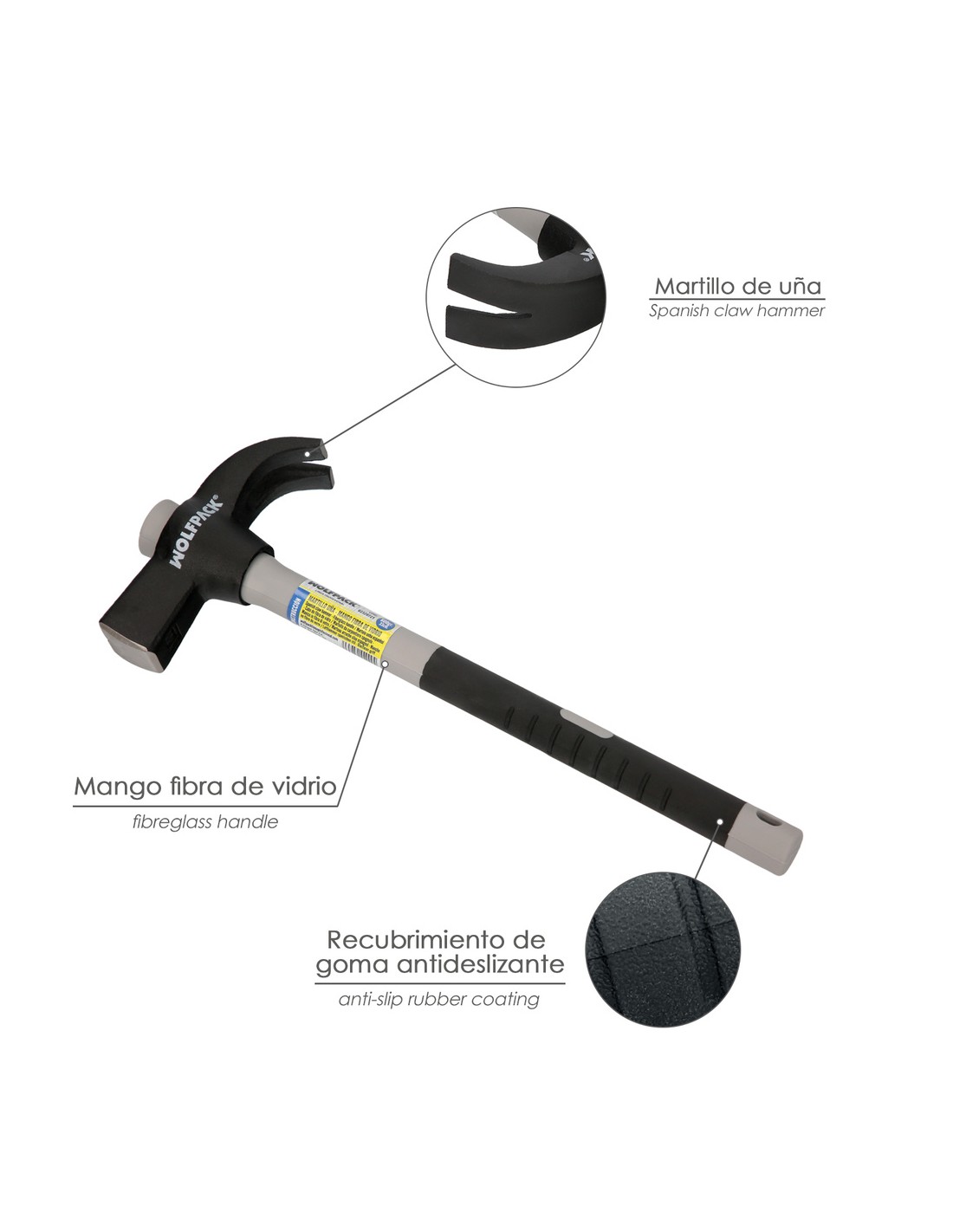 Martillo Uña Tipo Español Mango Fibra Vidrio