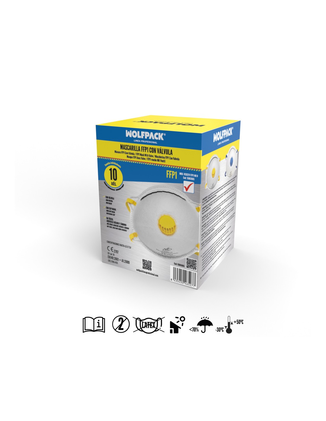 Mascarilla FFP1 Rigida Con Valvula (10 Unidades) Envasadas Individualmente