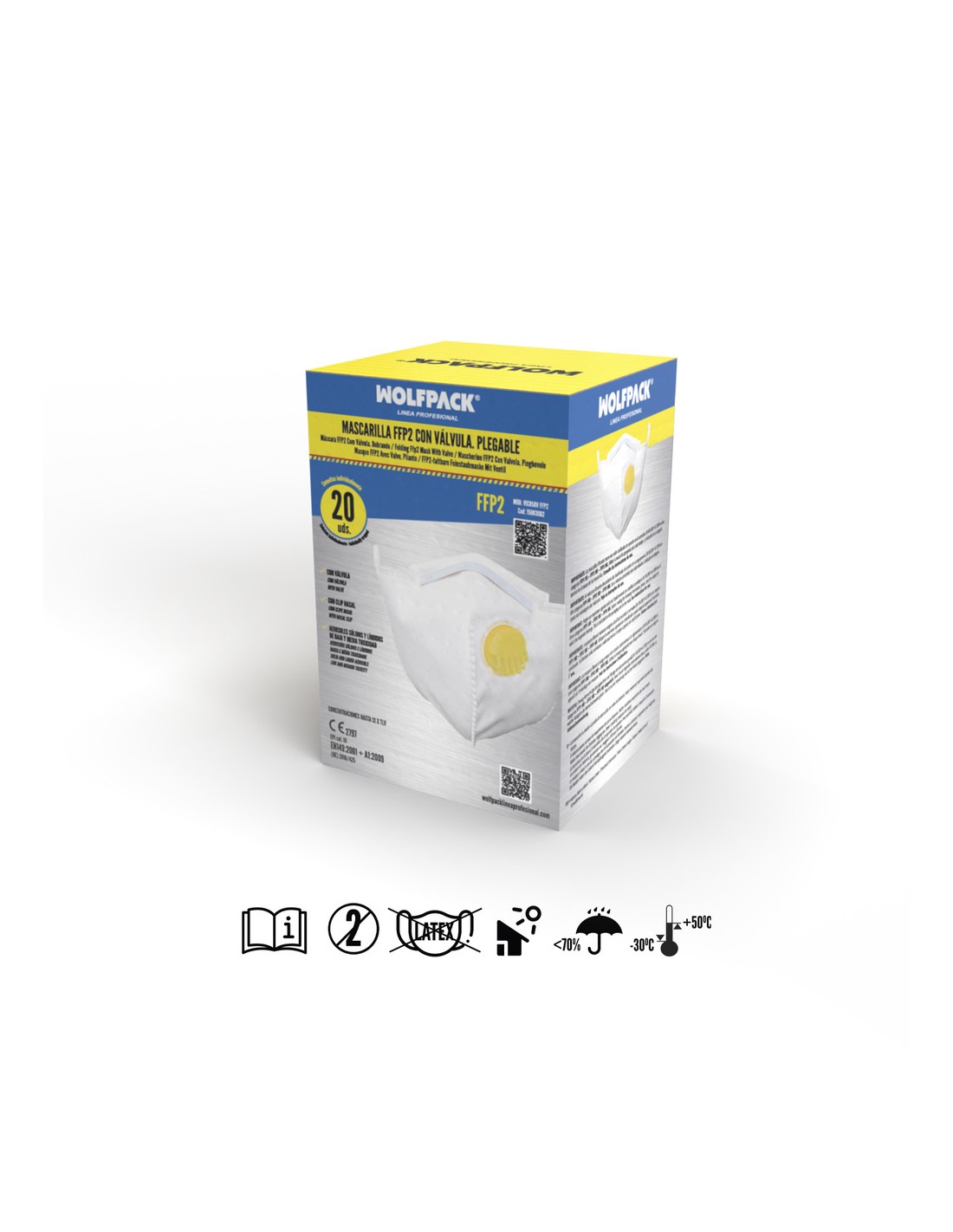 Mascarilla Respiratoria FFP2 Con Valvula. Plegable (20 Unidades) Envasadas Individualmente