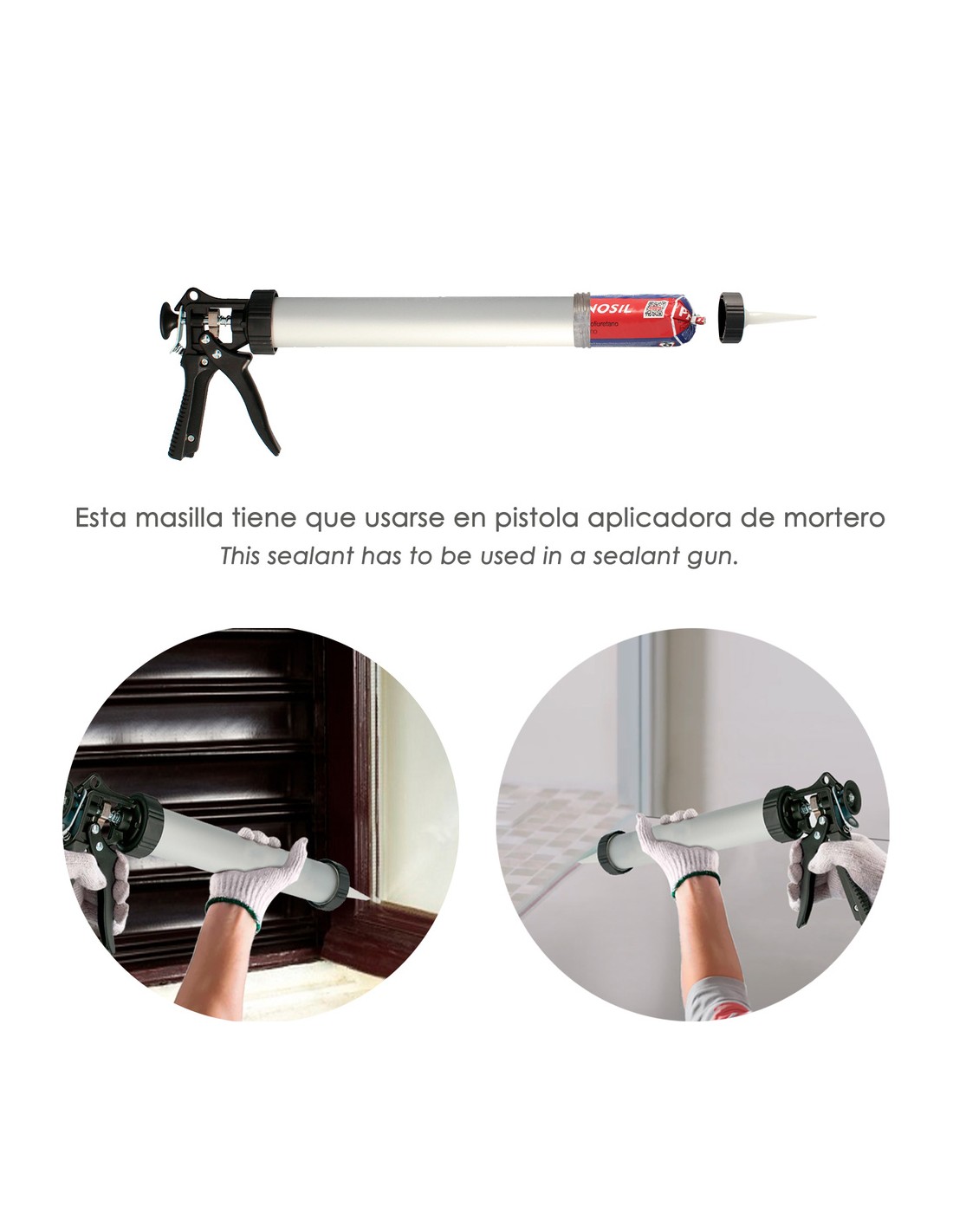 - Masilla sellante y adhesiva a base de poliuretano monocomponente, que reticula rápidamente