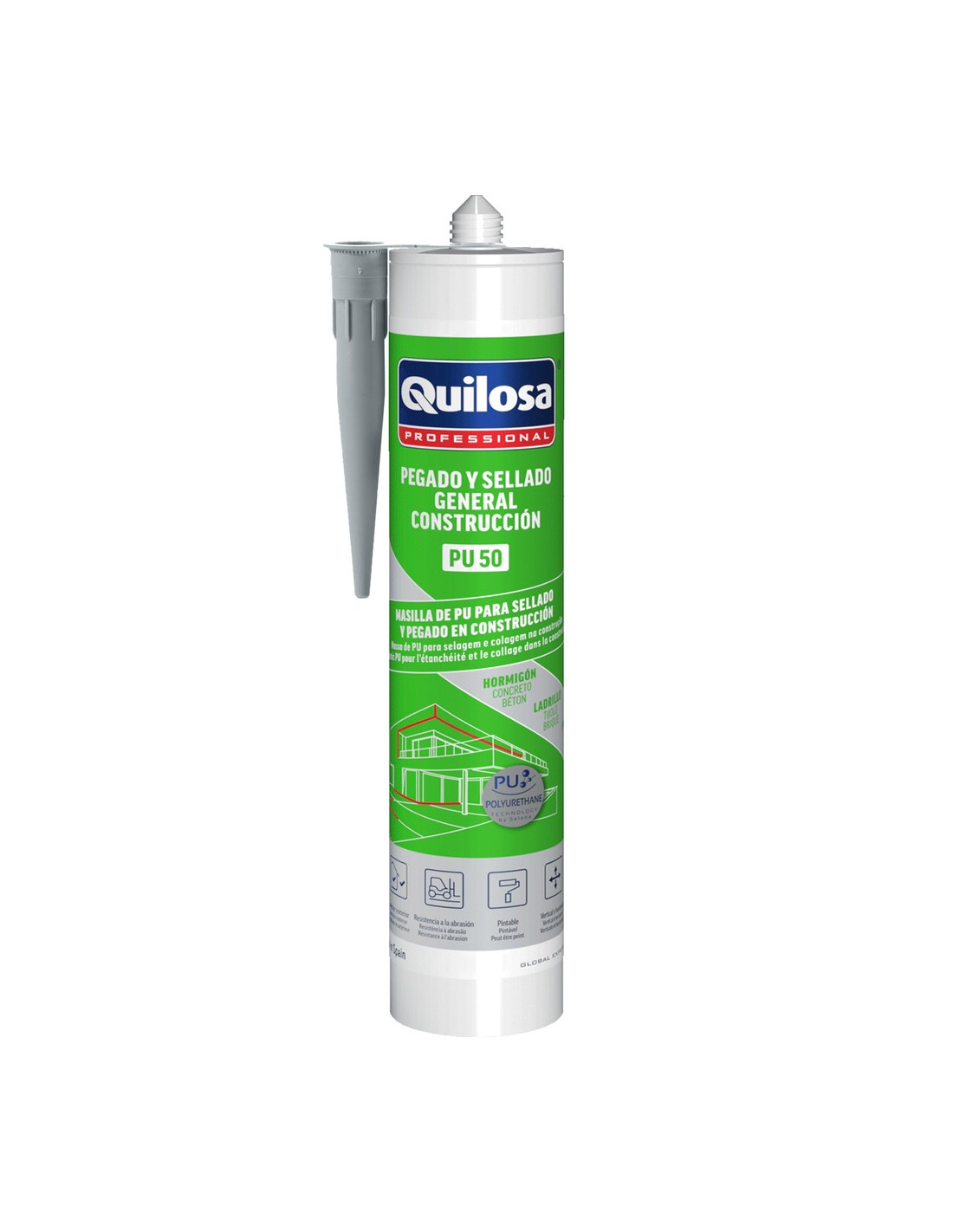 - Es una masilla de poliuretano de alta calidad con capacidad para sellar o pegar sobre mortero, ladrillo, hormigón, madera, piedra natural o artificial, grés cerámico, acero, aluminio, vidrio, mármol, PVC,...