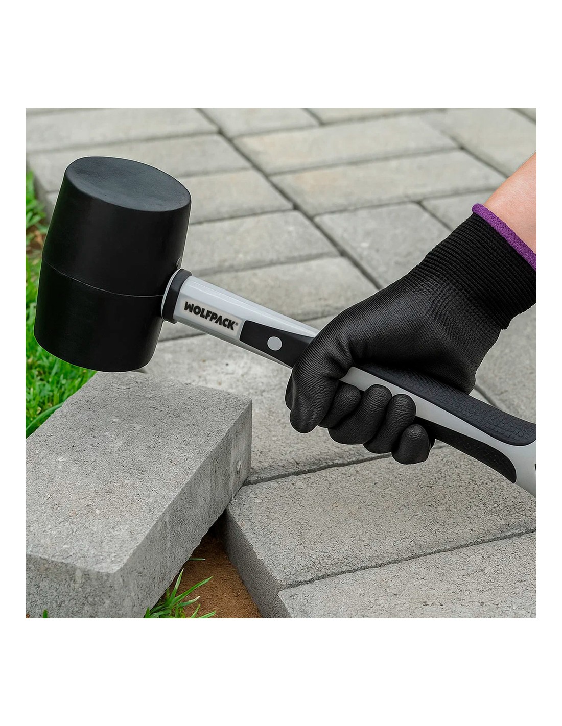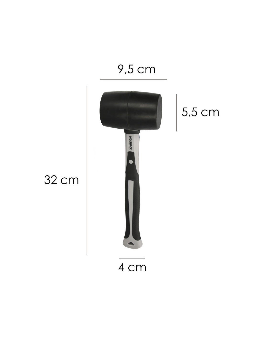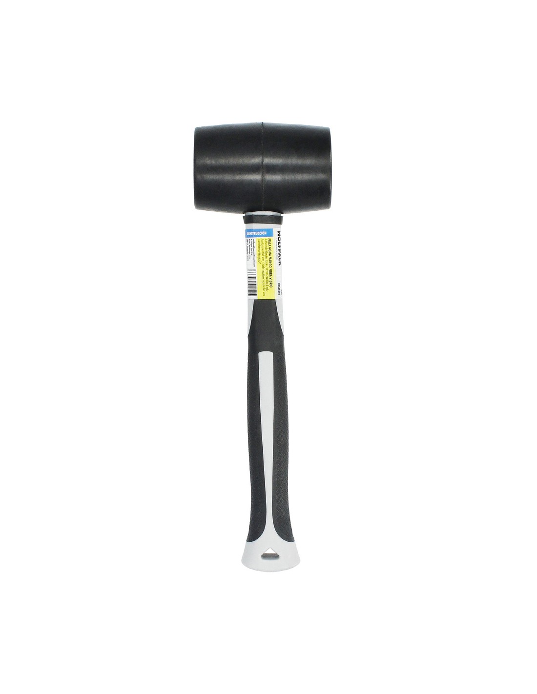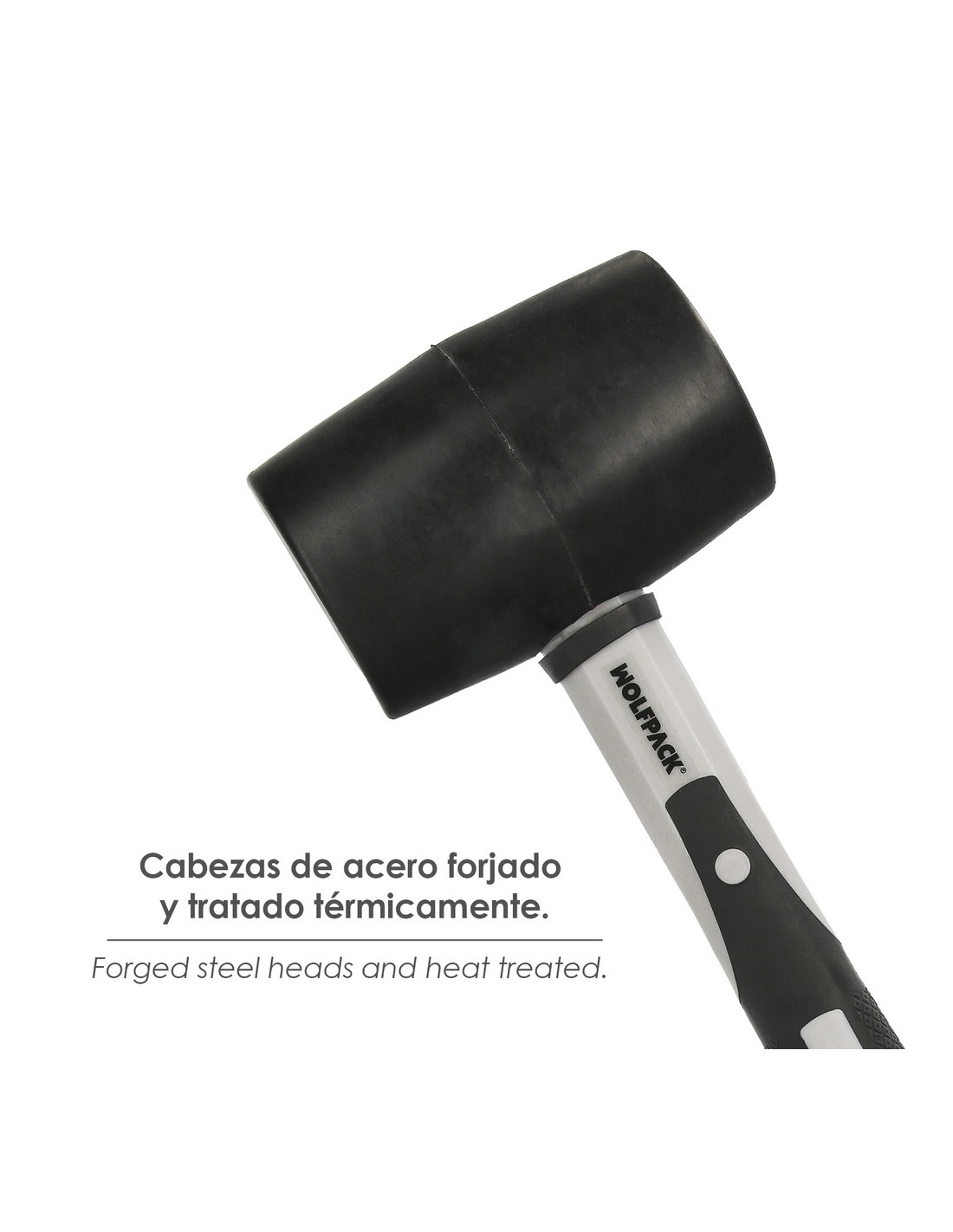 Maza goma mango fibra de vidrio. - Peso: 500 gramos. - Mango de fibra de vidrio de alta calidad. - Superficie engomada para mayor comodidad y ergonomía. - Cabezas de acero forjado y tratado térmicamente. - Acabado texturizado de las cabezas.