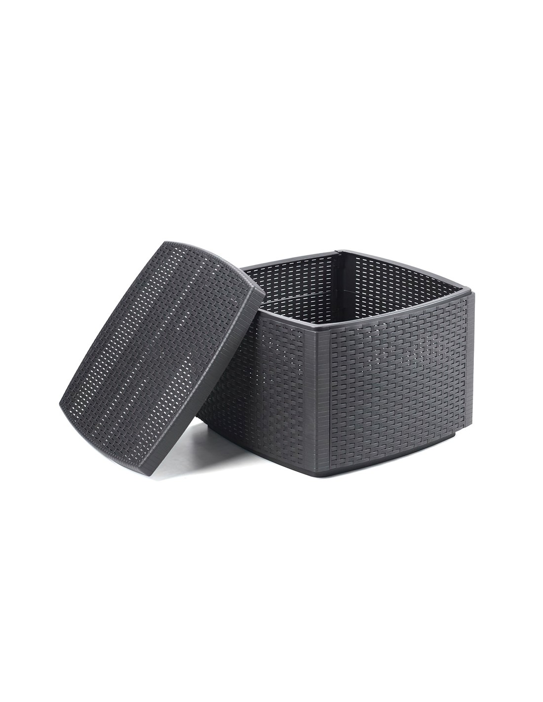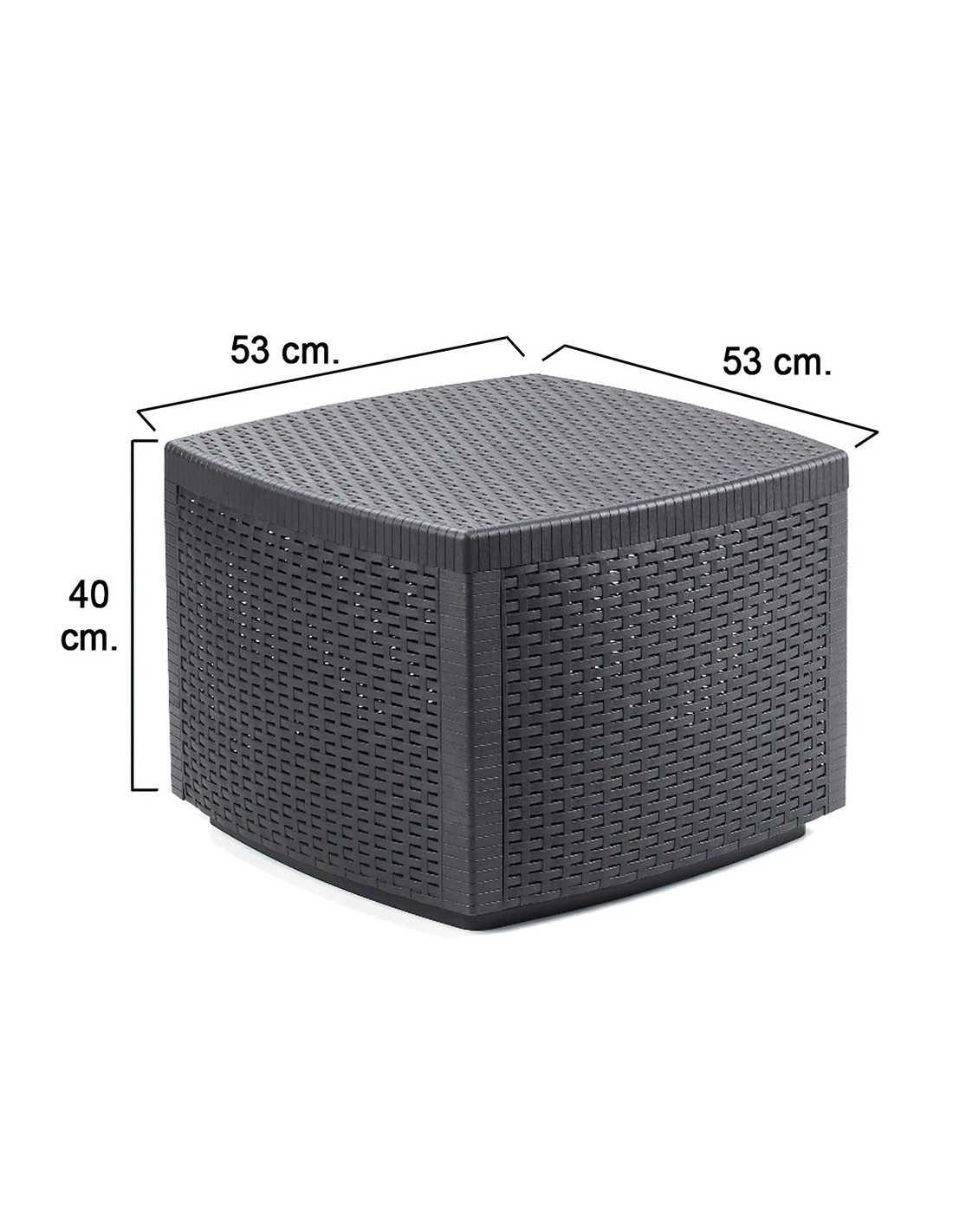 Mesa Resina Auxiliar Simil Rattan Cofre 53x53x40 cm.