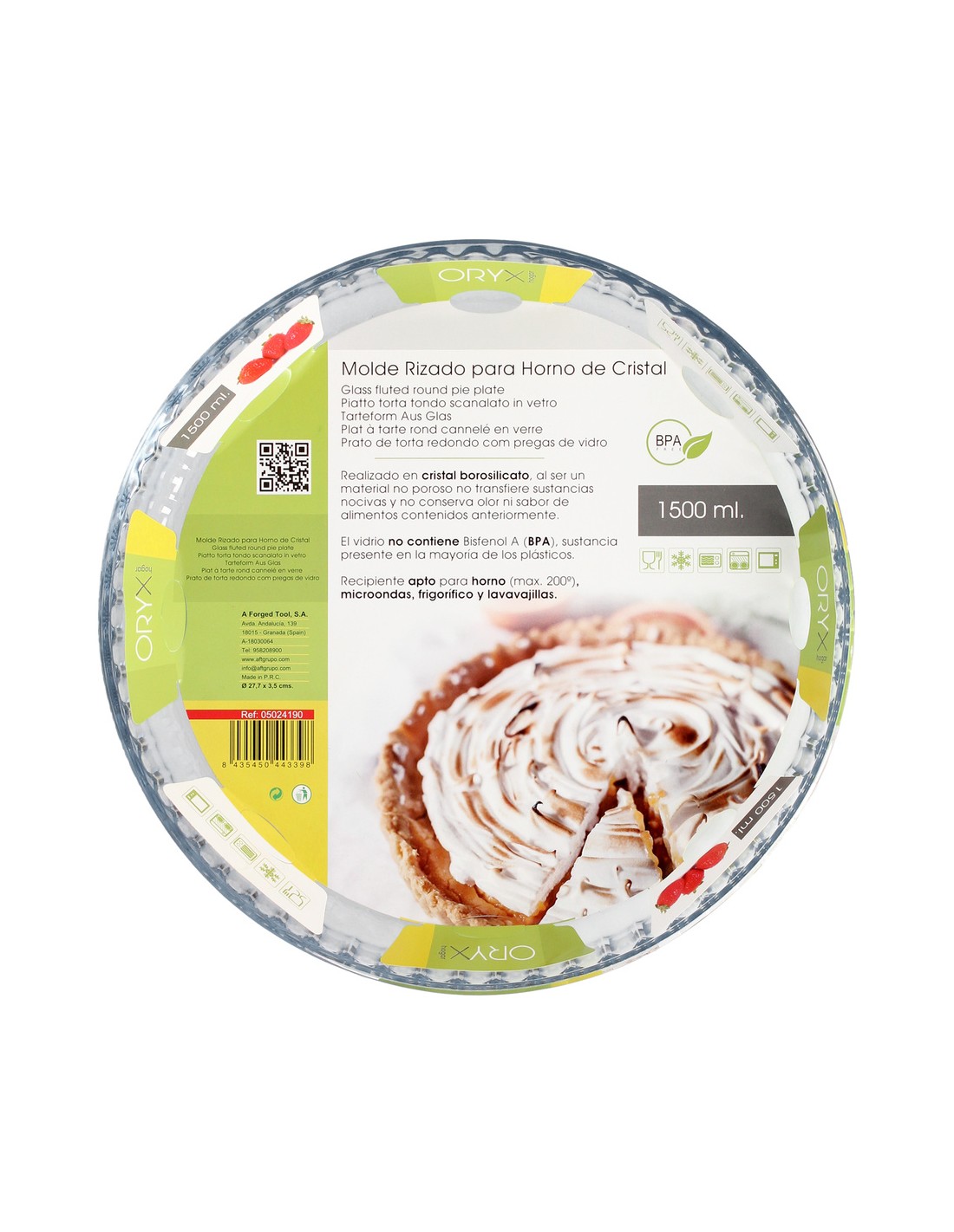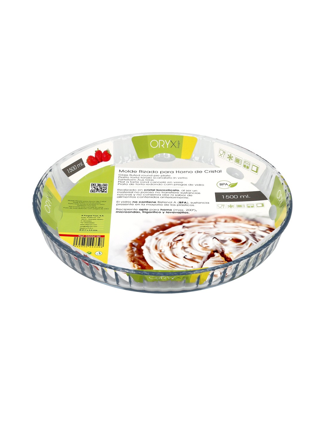 Molde Rizado Horno Cristal Borosilicato Ø 28 cm. Ideal Postres, Cocina, Resposteria, Tartas, Quiche, Libre BPA