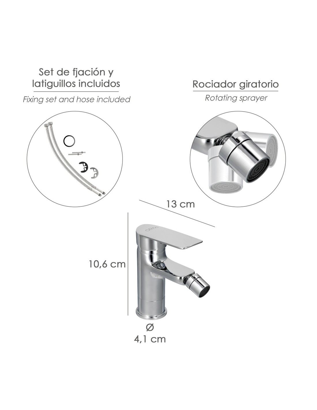 Monomando Bide "Hamburgo" Grifo Baño, Grifo Encimera, Grifo Cocina, Grifo Mezclador. Cartucho Ceramico Ø 35 mm.