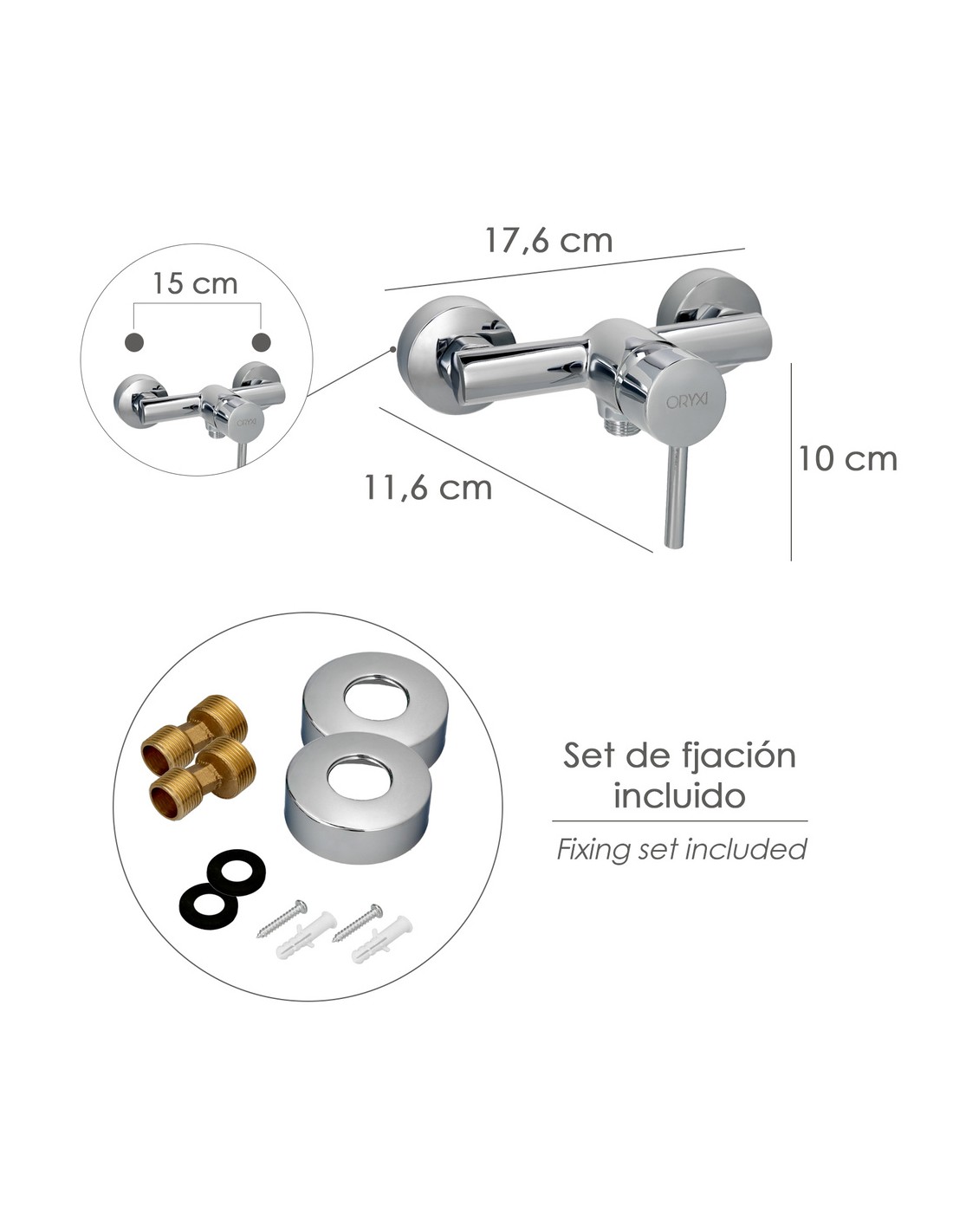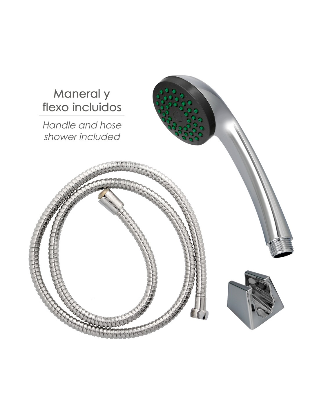 - Incluye maneral de ducha, flexo, soporte y set de fijación.