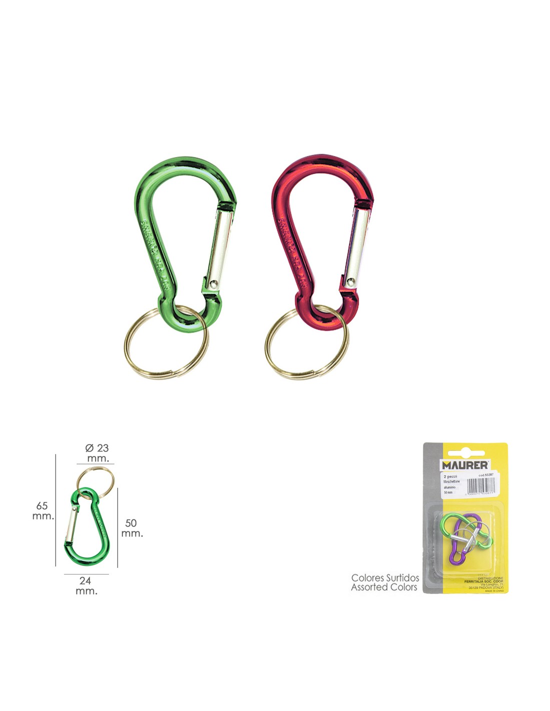 Mosqueton Bombero Aluminio Para llaves 50 mm. Blister 2 piezas