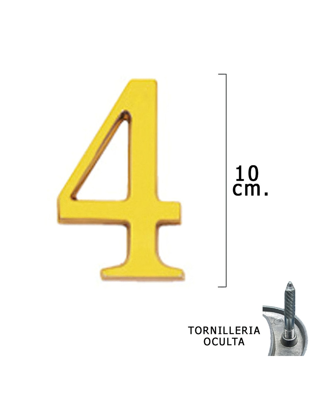 Numero Latón "4" 10 cm. con Tornilleria Oculta (Blister 1 Pieza)