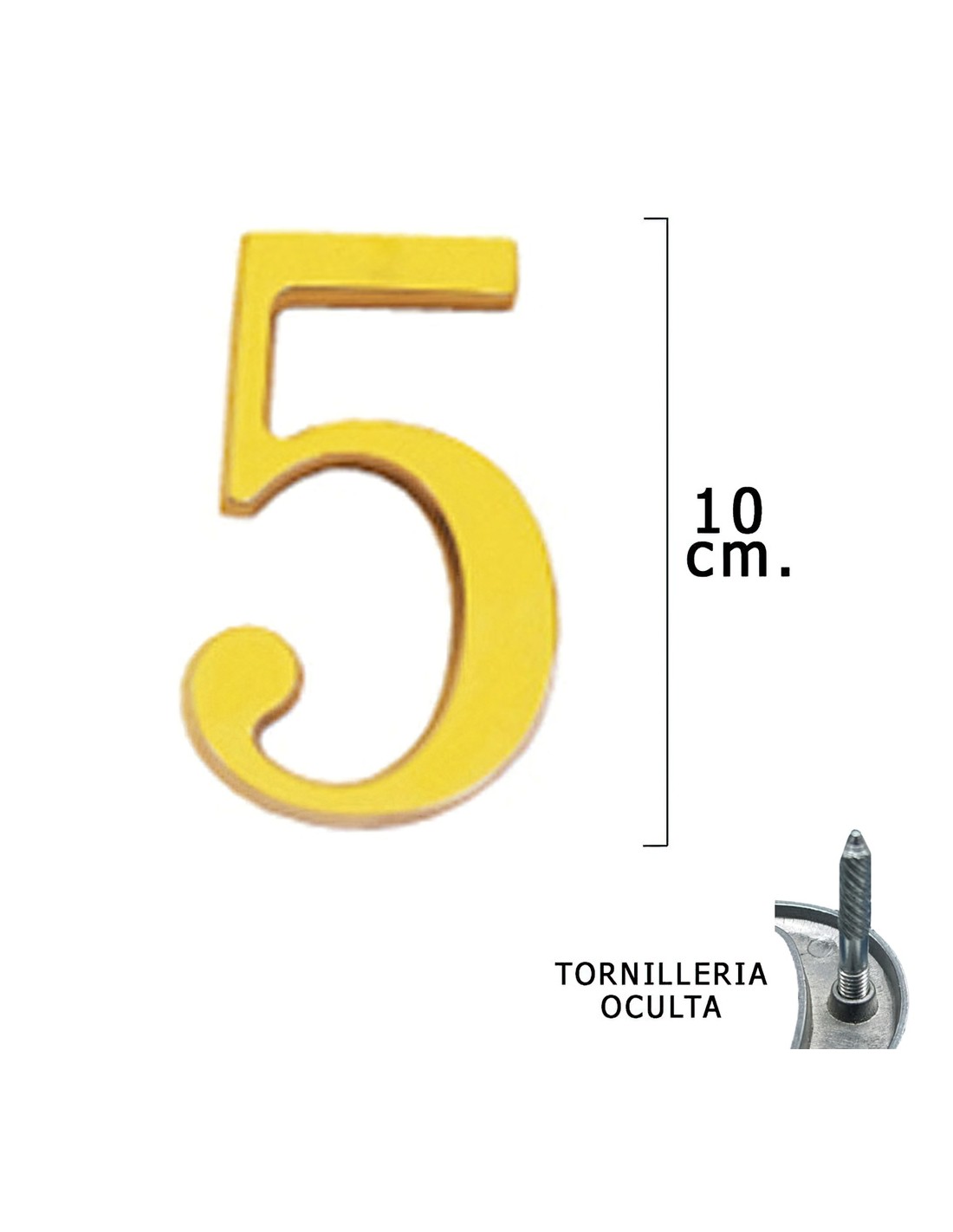 Numero Latón "5" 10 cm. con Tornilleria Oculta (Blister 1 Pieza)