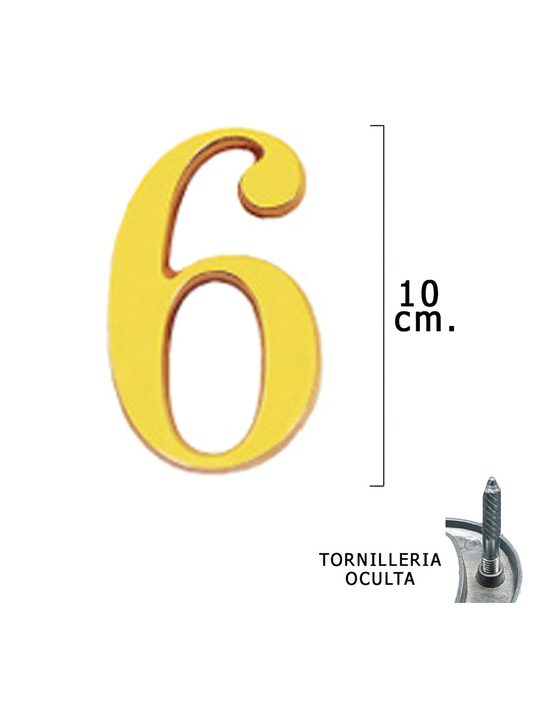 Numero Latón "6" 10 cm. con Tornilleria Oculta (Blister 1 Pieza)