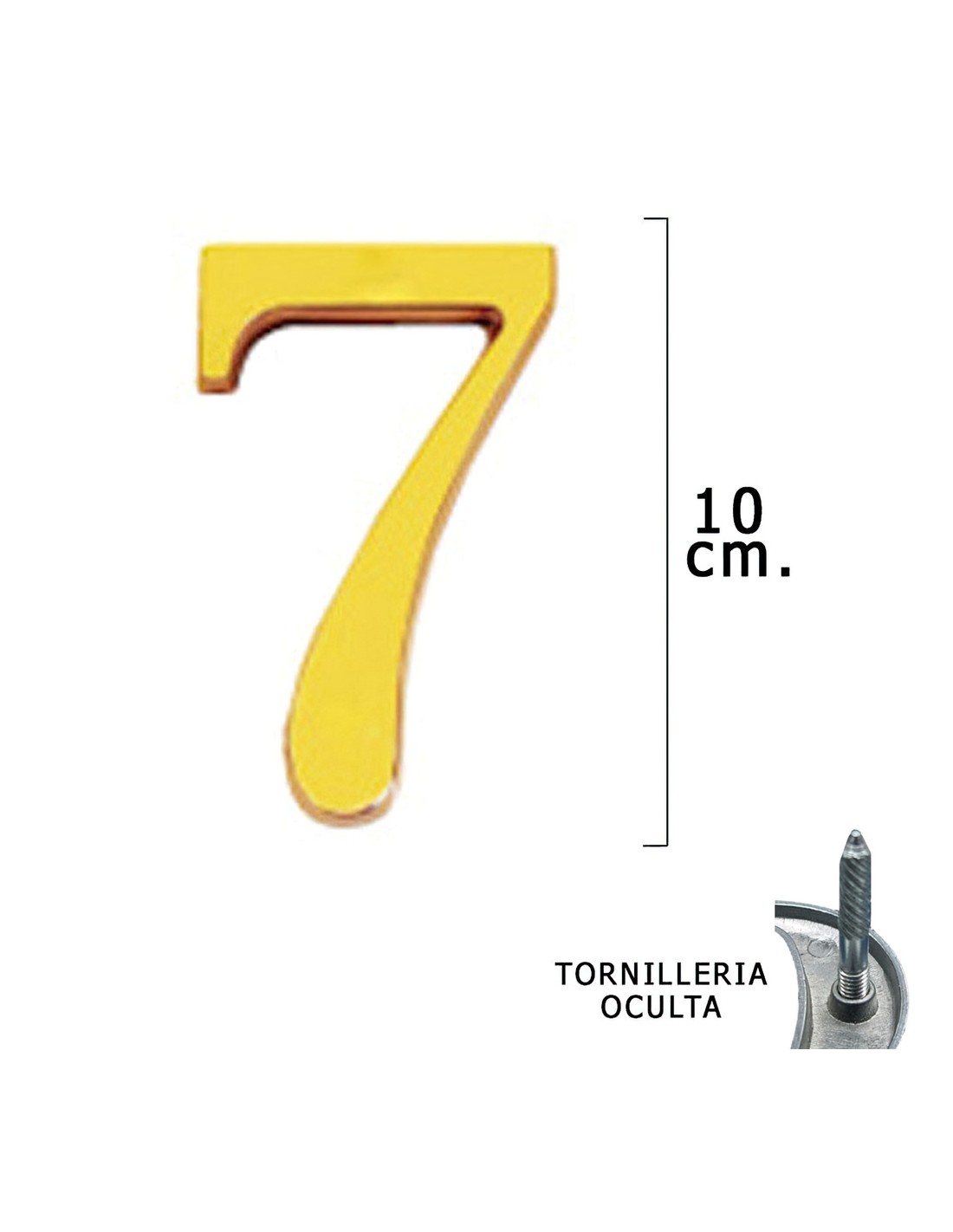 Numero Latón "7" 10 cm. con Tornilleria Oculta (Blister 1 Pieza)