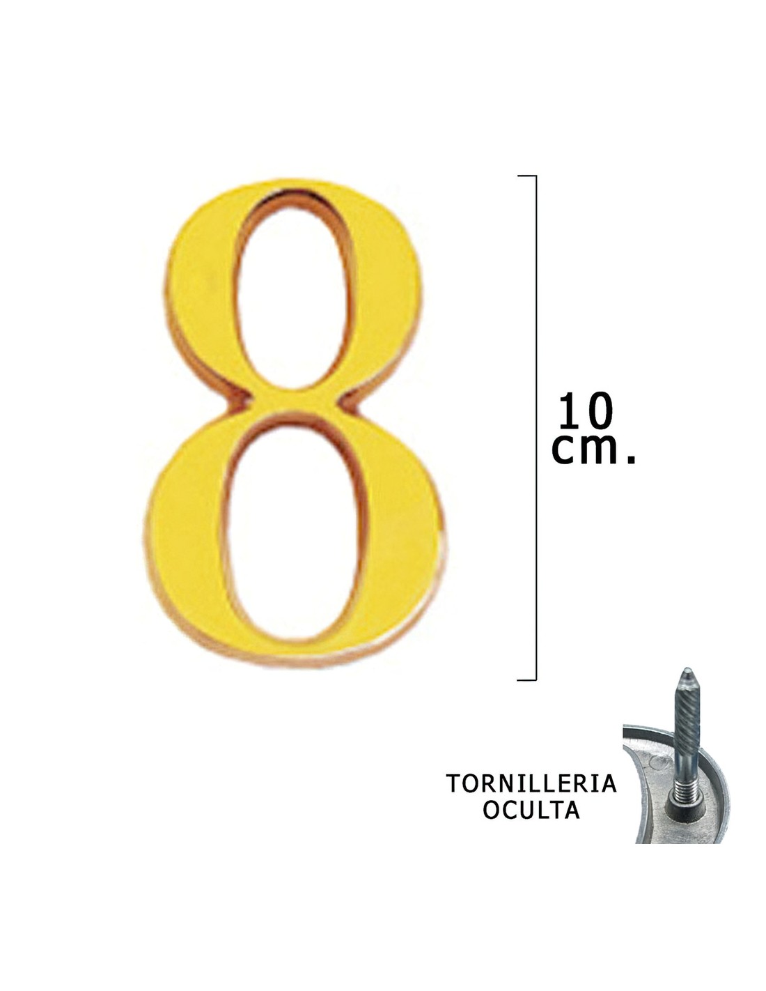 Numero Latón "8" 10 cm. con Tornilleria Oculta (Blister 1 Pieza)