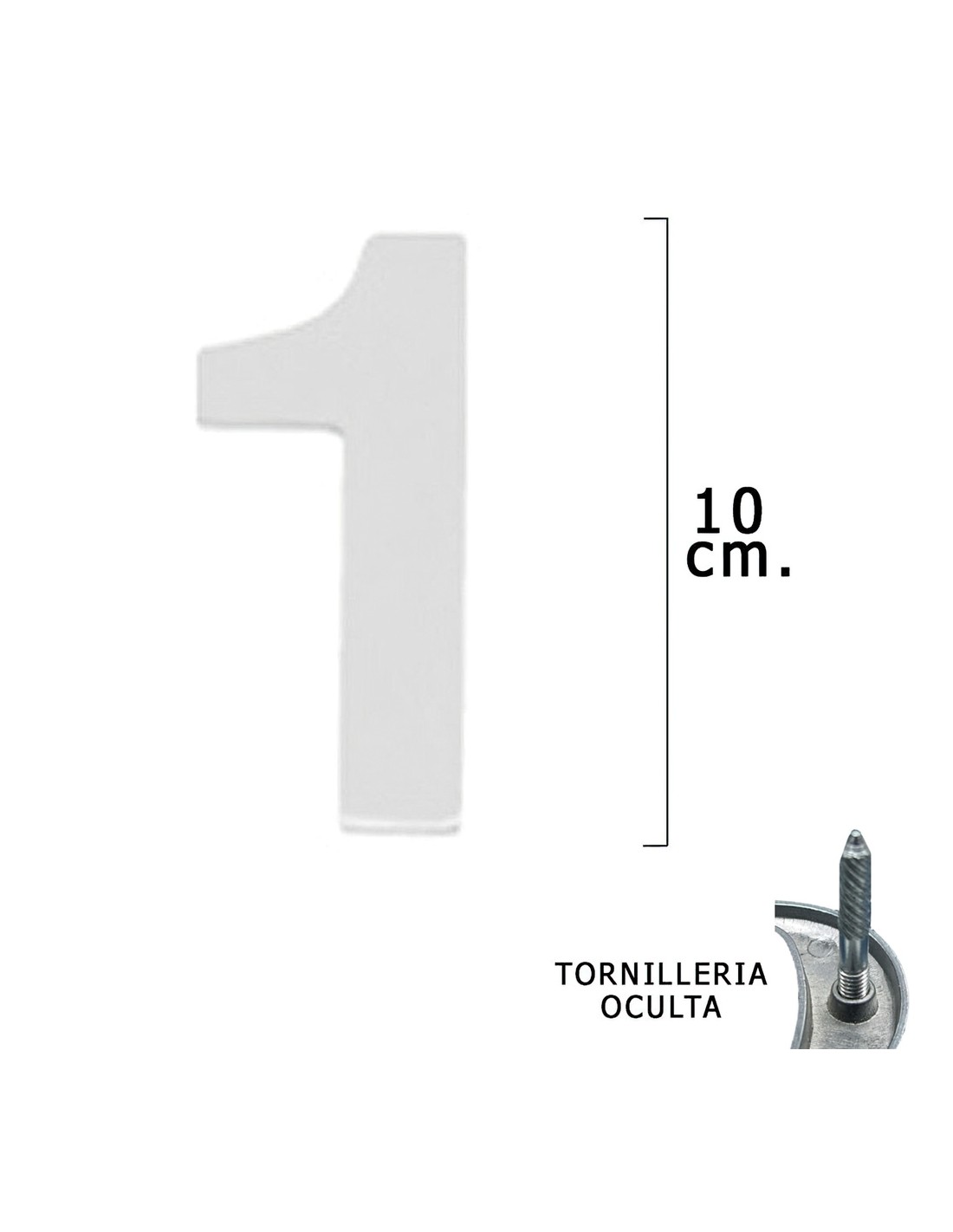 Numero Metal "1" Plateado Mate 10 cm. con Tornilleria Oculta (Blister 1 Pieza)