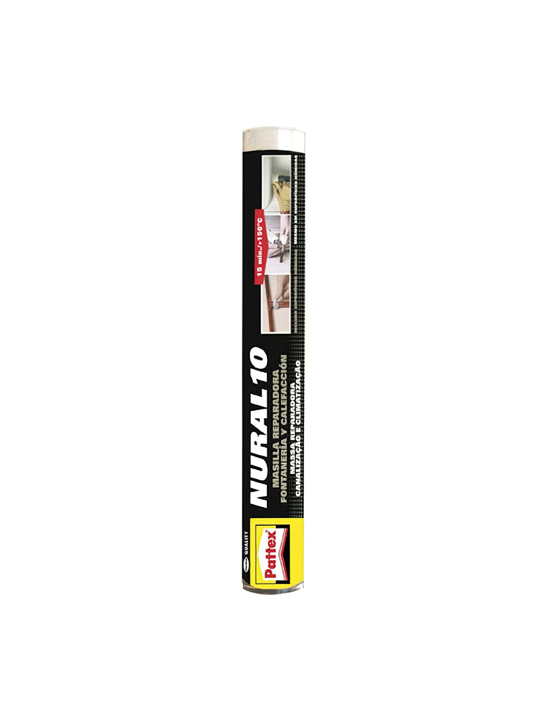 - Pattex Nural 10 es una masilla adhesiva rápida, especial para reparar y restaurar todo tipo de material de obra, conducciones metálicas y de PVC.