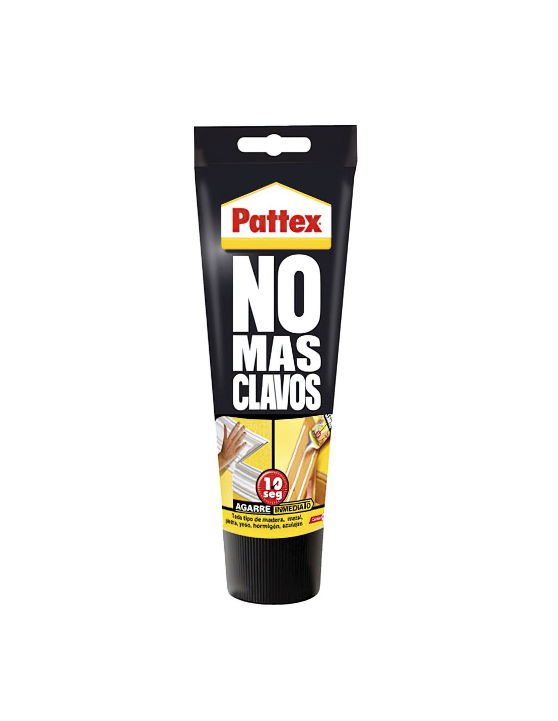 - Los restos de producto no endurecido se limpian fácilmente con un trapo húmedo. Importante: al menos una de las superficies debe ser porosa. Se recomienda uso en interiores. Pattex No Mas Clavos pega: madera, ladrillo, hormigón, cerámica, metales, vidrio, corcho, PVC rígido, porexpan. No es apto para polietileno, polipropileno ni ptfe. No es adecuado para fijar espejos. No aplicar sobre papel pintado.