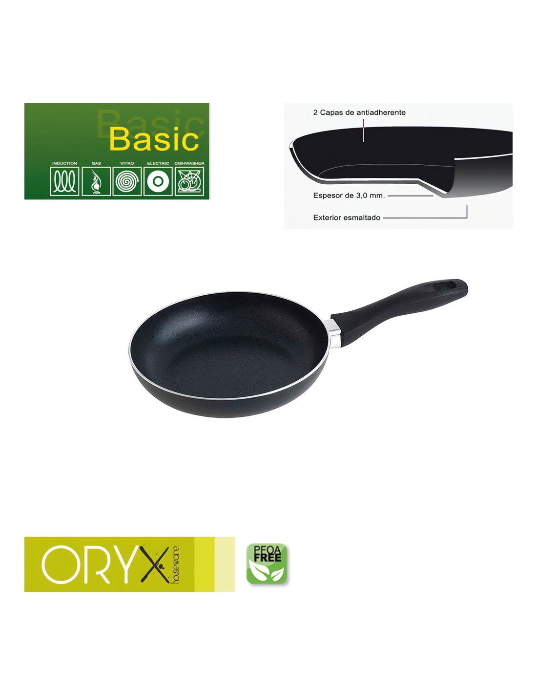 Oryx Sartén Aluminio Antiadherente Basic, Alta Resistencia, Apta Inducción, Libre PFOA, Diámetro 20 cm, Espesor 3 mm.