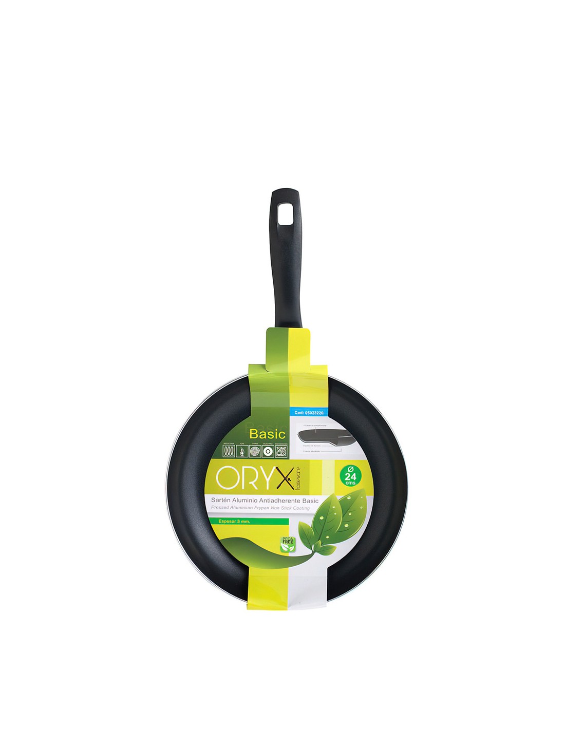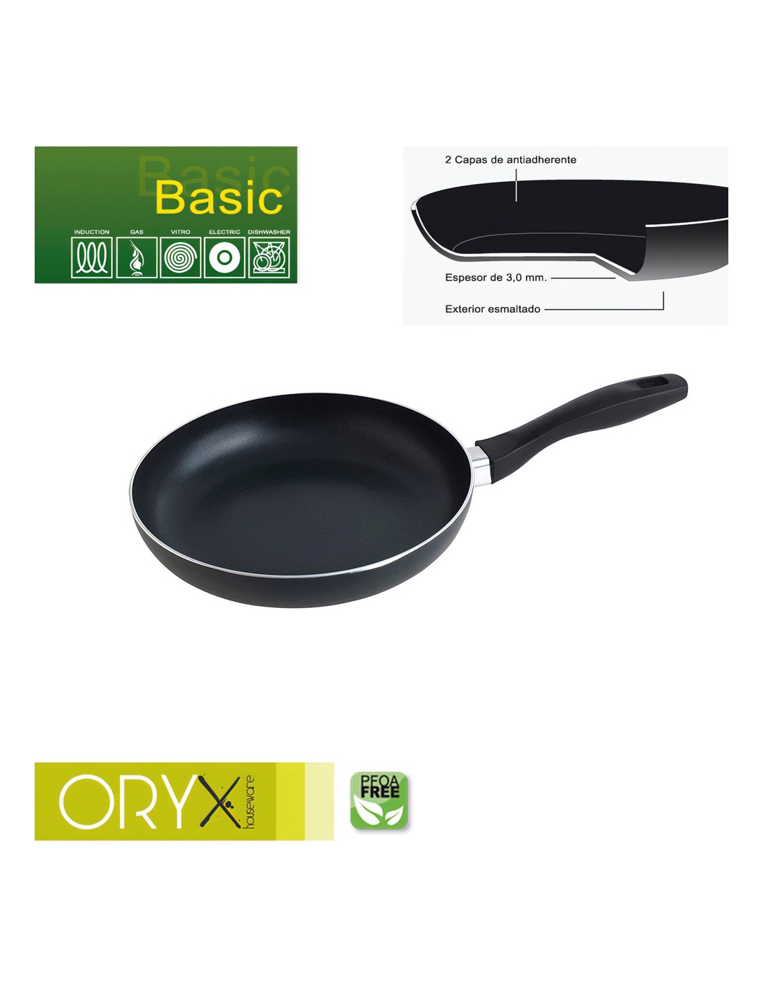 Oryx Sartén Aluminio Antiadherente Basic, Alta Resistencia, Apta Inducción, Libre PFOA, Diámetro 24 cm, Espesor 3 mm.