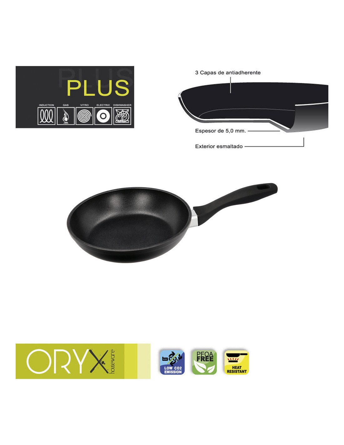 Oryx Sartén Aluminio Antiadherente Plus, Forjada, Apta Inducción, Libre PFOA, Diámetro 20 cm, Espesor 5 mm.