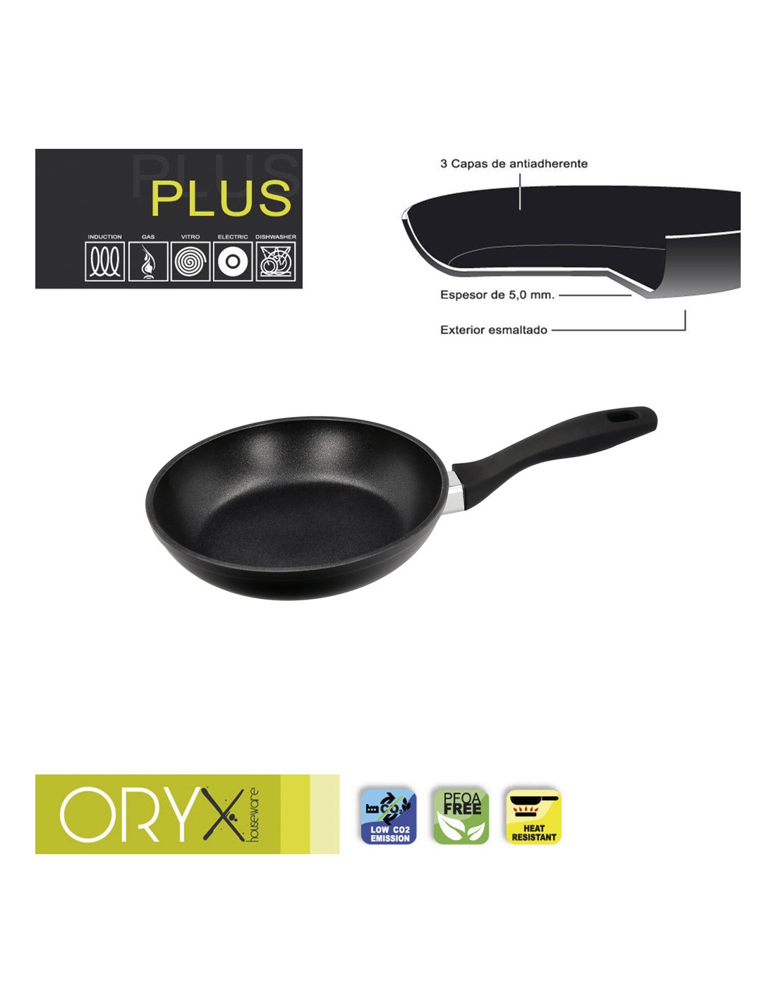 Oryx Sartén Aluminio Antiadherente Plus, Forjada, Apta Inducción, Libre PFOA, Diámetro 22 cm, Espesor 5 mm.