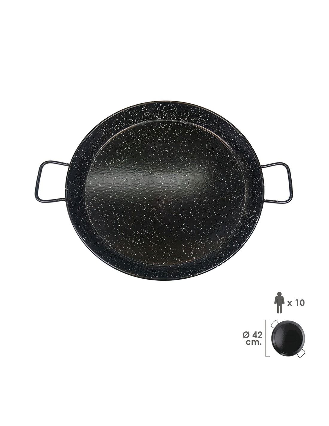Paellera Valenciana Esmaltada 10personas/ 42 cm. - Ideal para hacer paellas. - Utíl para 10 personas. - Diámetro 42 cm. - Ideal para realizar paellas. - Para un cocinado uniforme recomendamos el uso de un paellero.