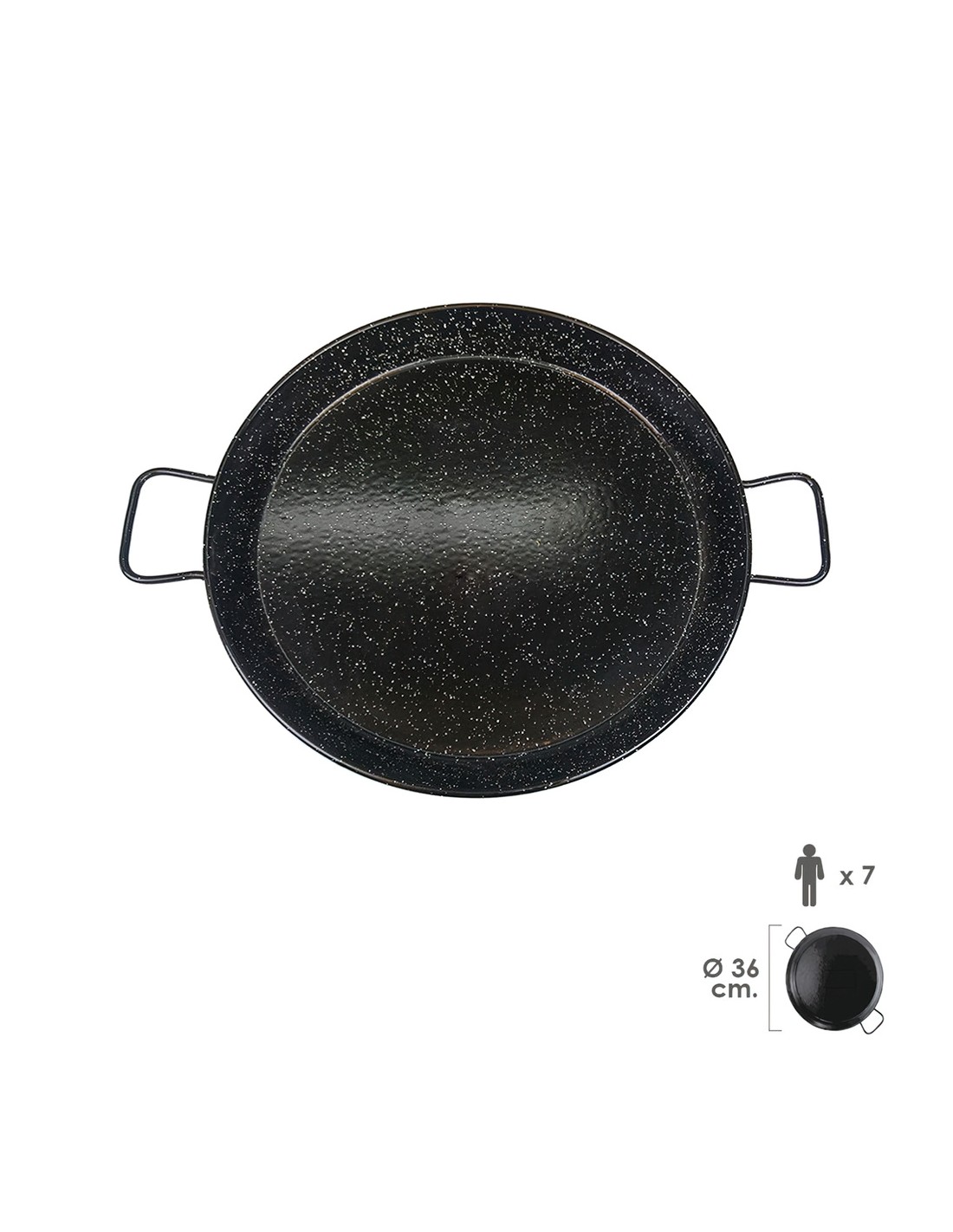 Paellera Valenciana Esmaltada 7personas/ 36 cm. - Ideal para hacer paellas. - Utíl para 7 personas. - Diámetro 36 cm. - Ideal para realizar paellas. - Para un cocinado uniforme recomendamos el uso de un paellero.
