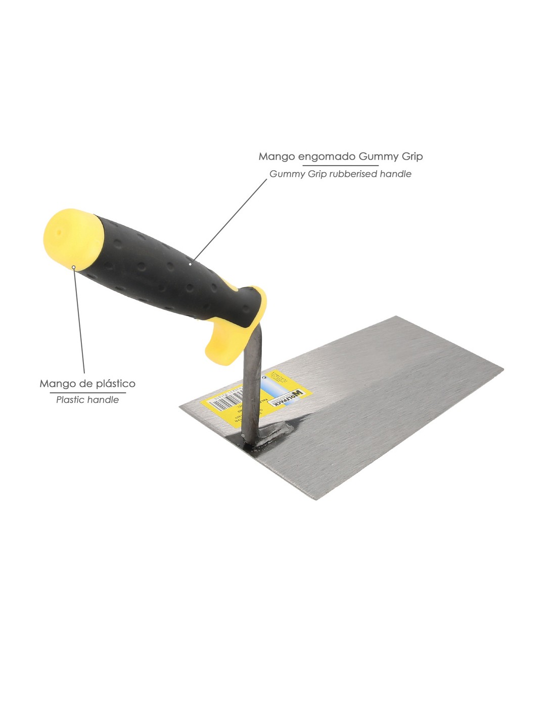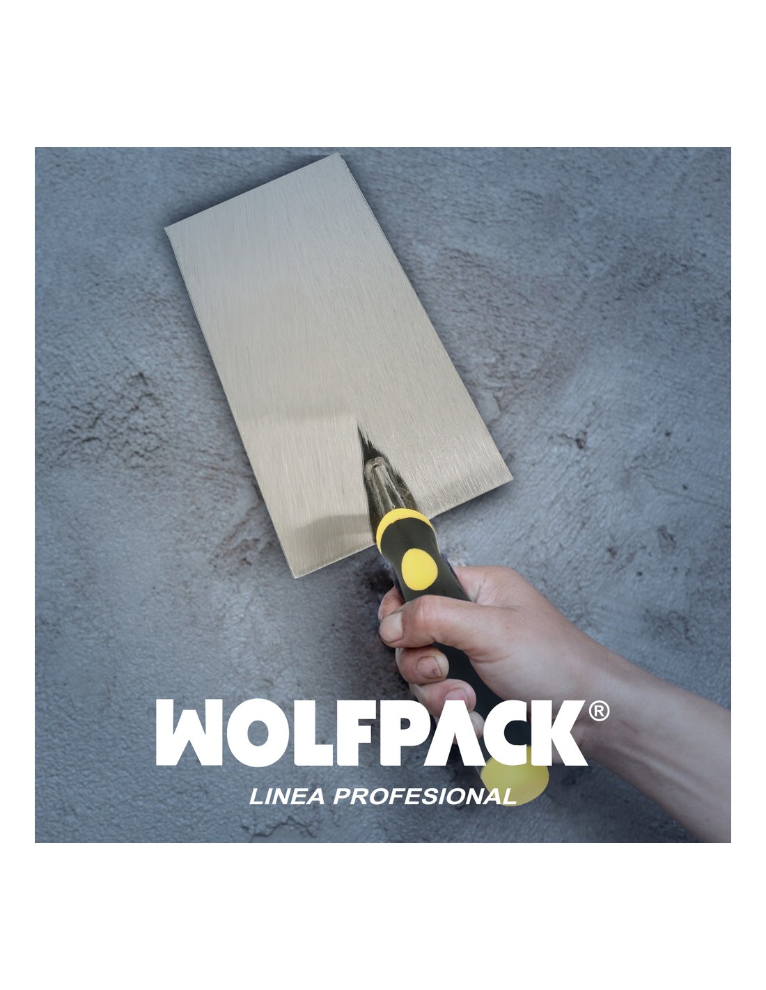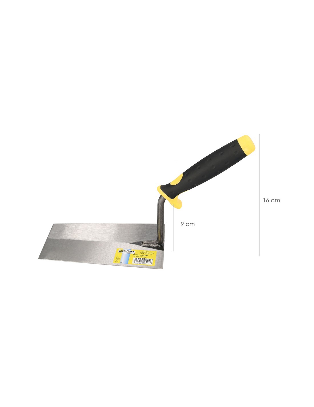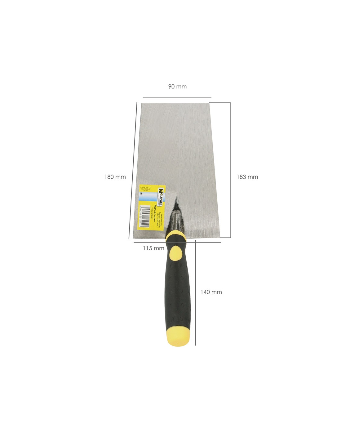 Paleta Wolfpack gummy grip 341-A / 180 mm. - Medida: 180 mm. - Mango realizado en bimaterial, aportando una mayor comodida. - El mango incluye una pieza de plástico para pequeños golpes de ajuste. - Artículo también conocido como: palustra.
