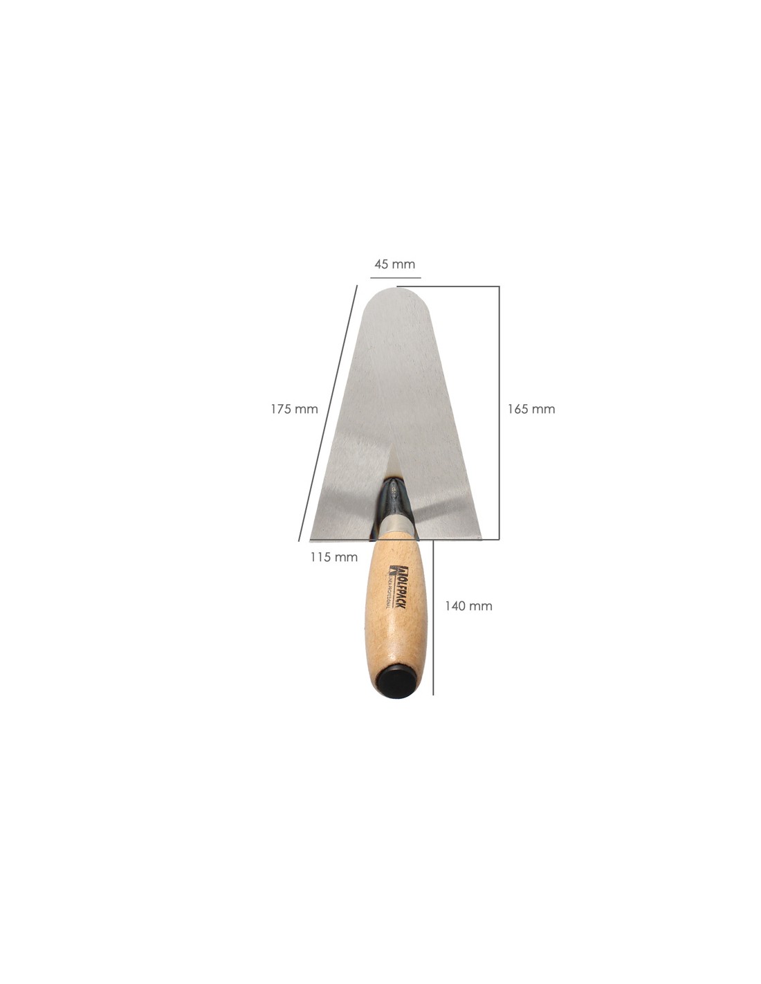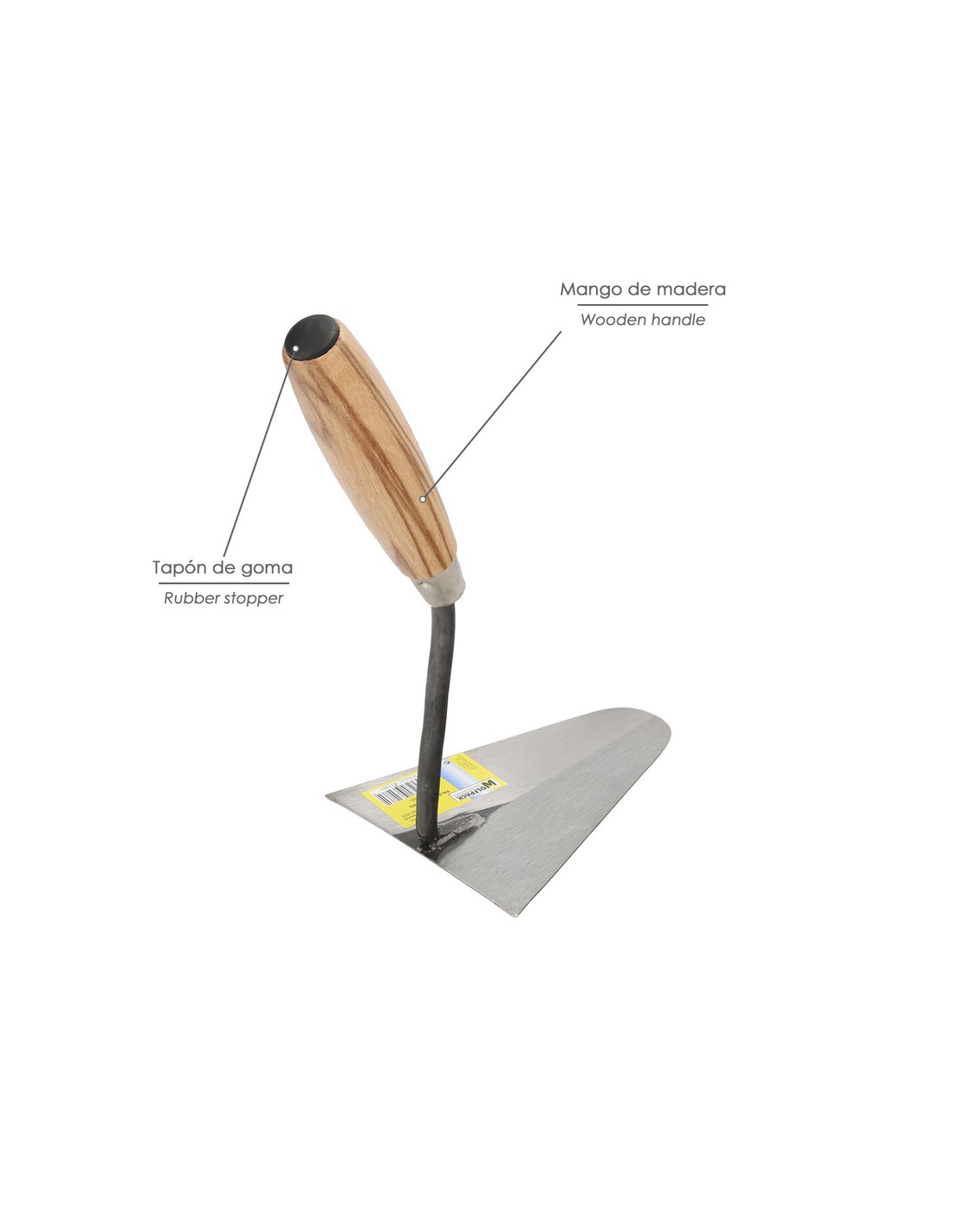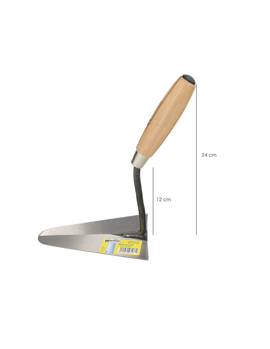 Paleta Wolfpack mango de madera 344 / 165 mm. - Medida: 165 mm. - Mango de madera barnizado. - El mango incluye una pieza de plástico para pequeños golpes de ajuste. - Artículo también conocido como: palustra.