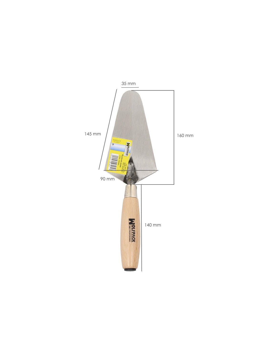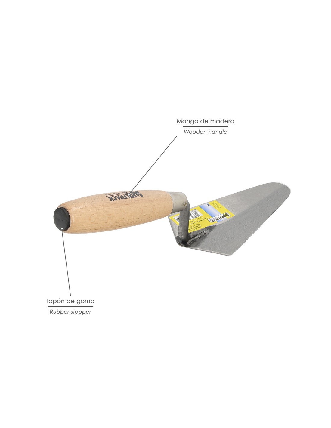 Paleta Wolfpack mango de madera 348 / 160 mm. - Medida: 160 mm. - Mango de madera barnizado. - El mango incluye una pieza de plástico para pequeños golpes de ajuste. - Artículo también conocido como: palustra.