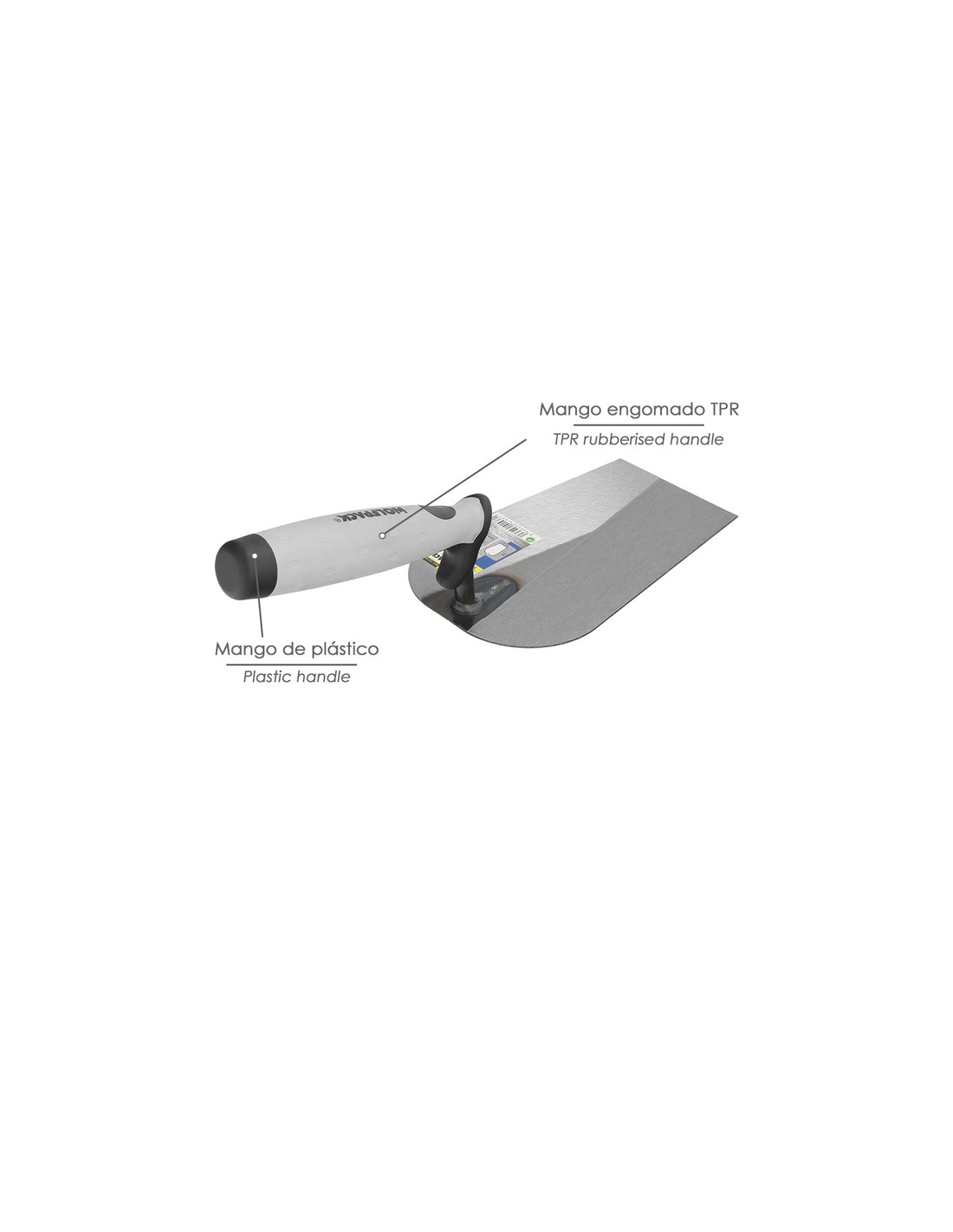- El mango incluye un protector para el dedo índice y una pequeña pieza de plástico para pequeños golpes de ajuste.