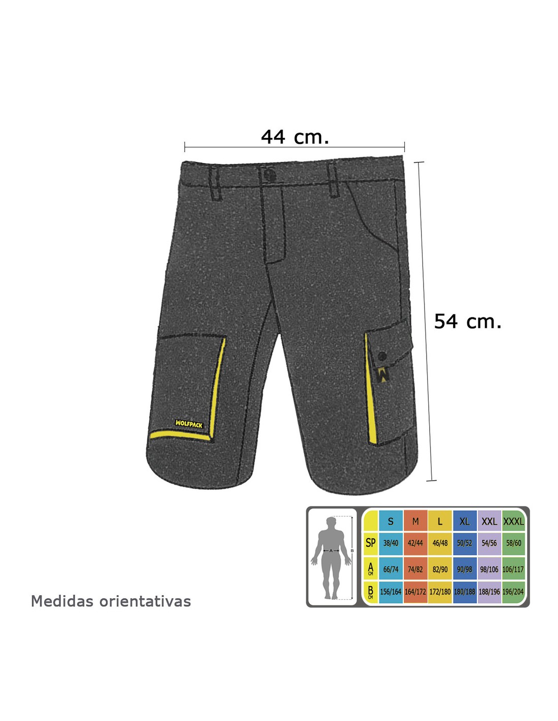 Pantalones Cortos DeTrabajo, Multibolsillos, Resistentes, Gris/Amarillo Talla 46/48 L