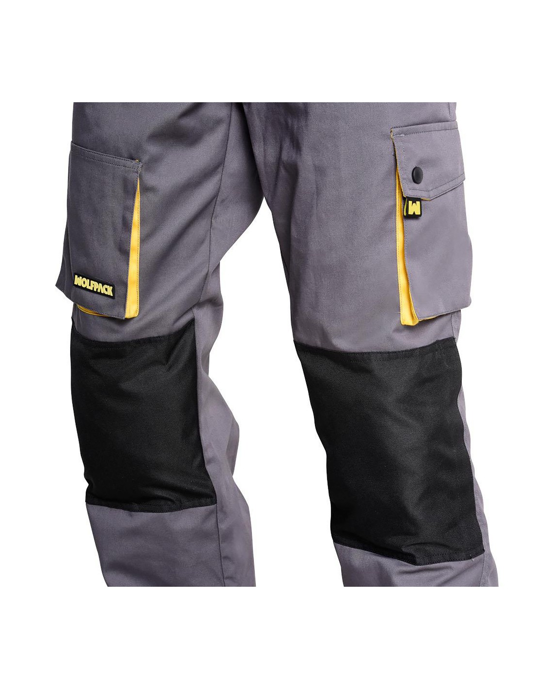 Pantalones Largos DeTrabajo, Multibolsillos, Resistentes, Rodilla Reforzada, Gris/Amarillo Talla 46/48 L (Slim Fit)