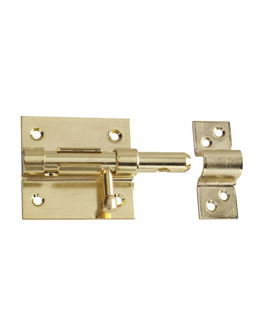 Pasador Wolfpack 455 - Medida: 70 mm. - Acabado latonado barnizado. - Para colocar en puertas, ventanas, etc. - También puede ser usado como cerrojos, pestillos y condenas.