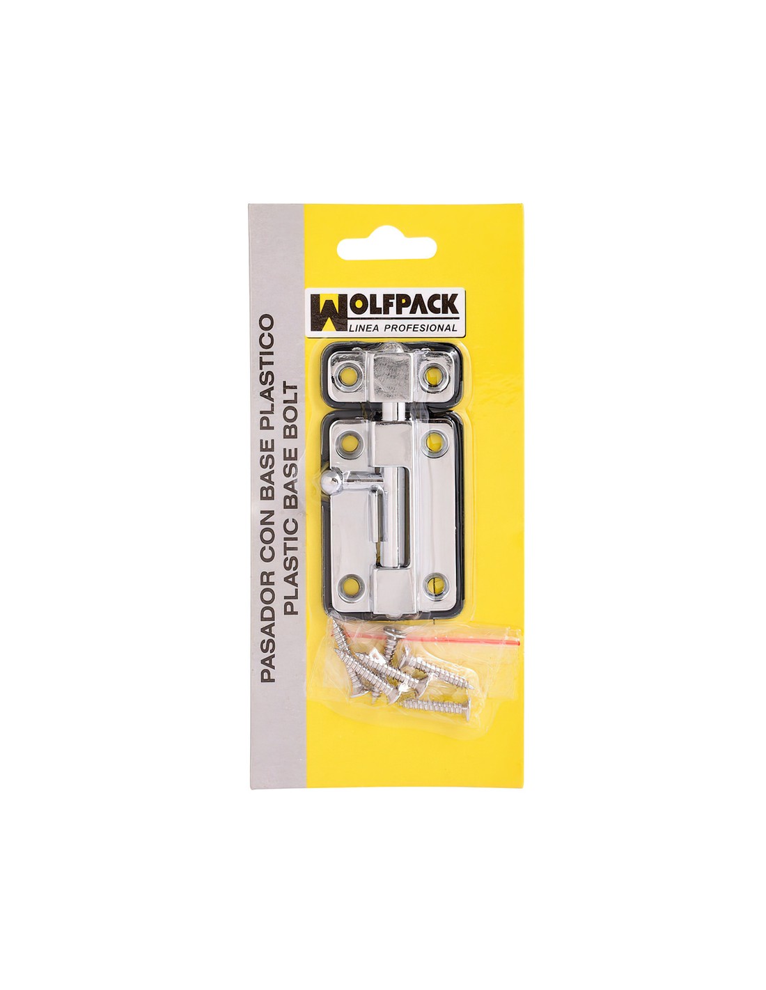 Pasador Wolfpack - Con base de plástico - Medida: 50 mm. - Acabado cromado. - Para colocar en puertas, ventanas, etc. - También puede ser usado como cerrojos, pestillos y condenas.