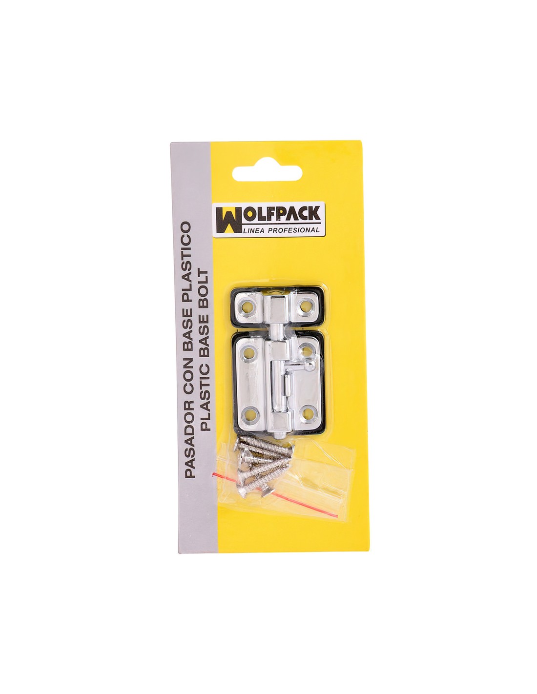 Pasador Wolfpack - Con base de plástico - Medida: 35 mm. - Acabado cromado. - Para colocar en puertas, ventanas, etc. - También puede ser usado como cerrojos, pestillos y condenas.