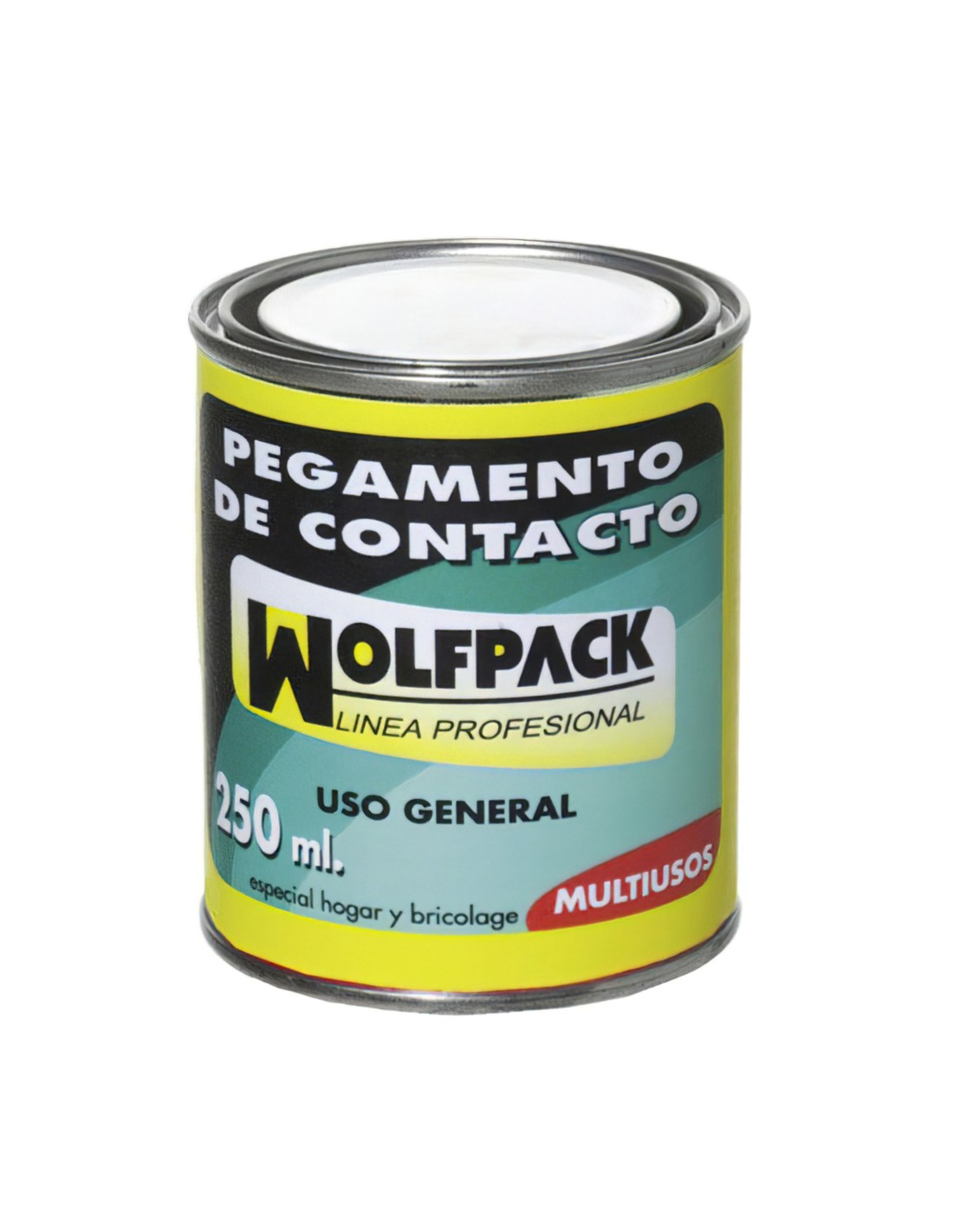 Pegamento Contacto Wolfpack 250 - Capacidad: 250 ml. - Adhesivo a dos caras de acción por contacto de uso universal. - Su excelente brochabilidad y adherencia lo hace ideal para el pegado de corcho, madera, estratificados melamínicos, tejidos, cuero, etc.