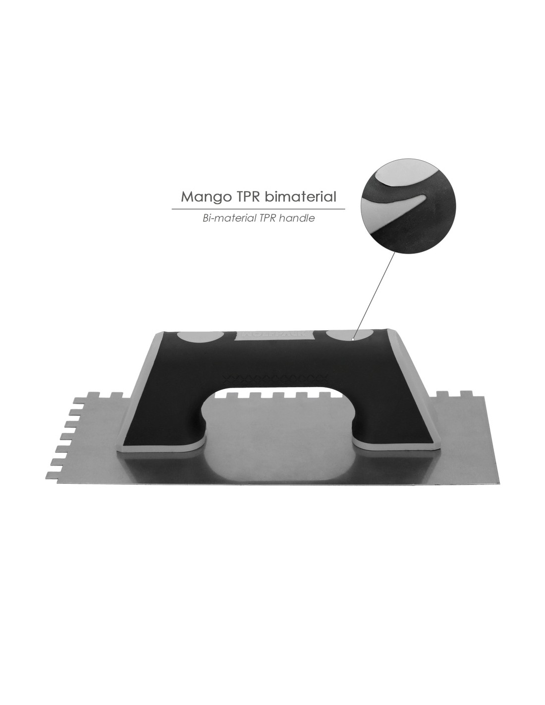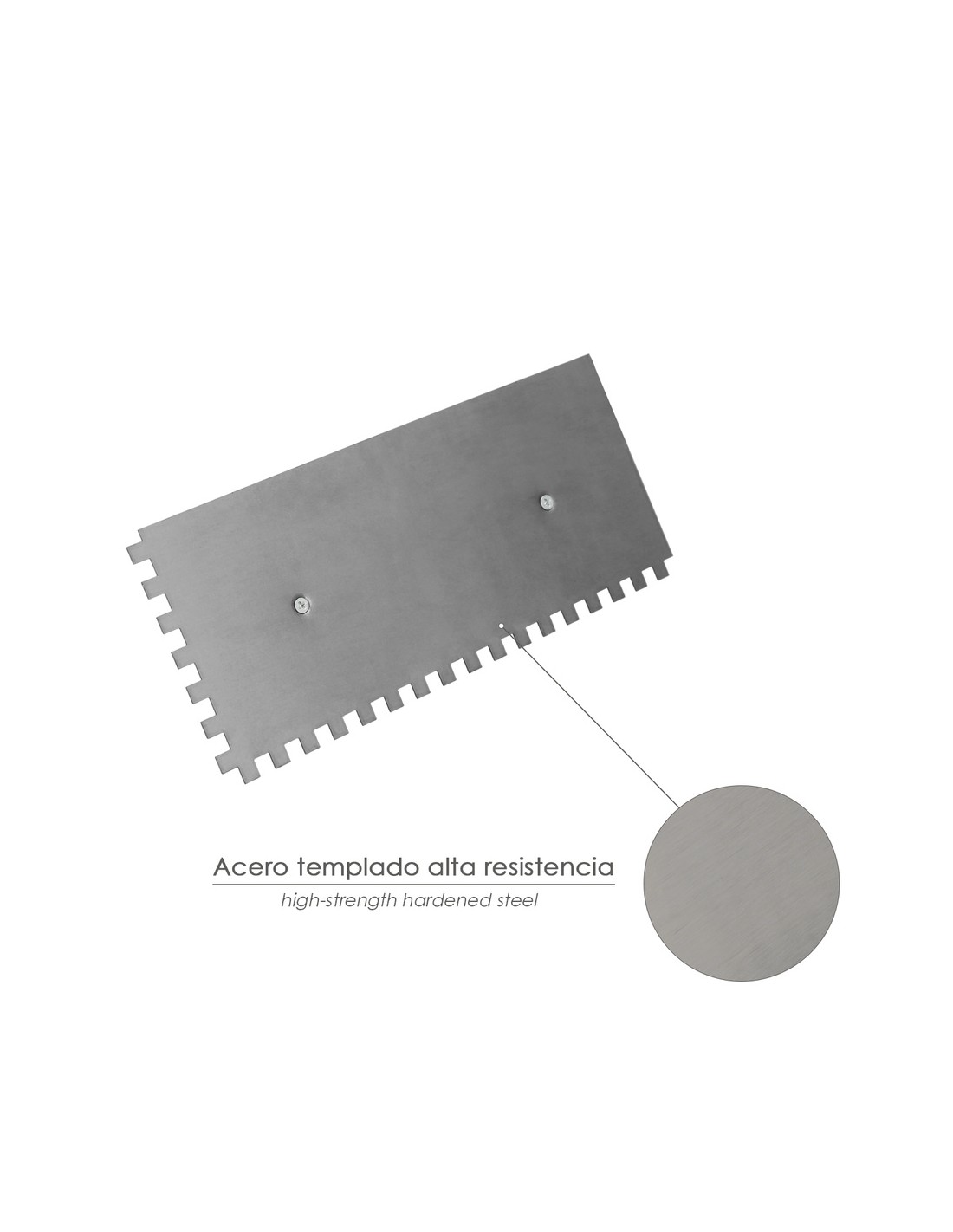 - También conocida como llana, plana o fratas, indicado para extender cementos, cementos cola, yesos, morteros, etc.