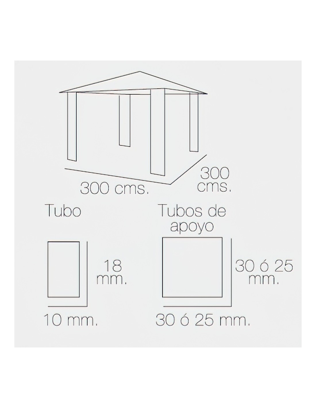 - Tubos de apoyo de 25x25 mm.