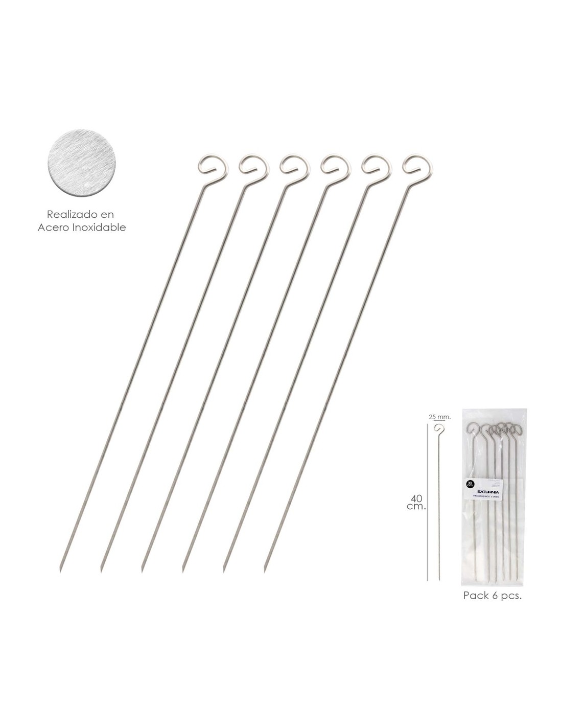 Pinchitos Acero Inoxidable Grandes 40 cm. (Blister 6 Unidades) Saturnia