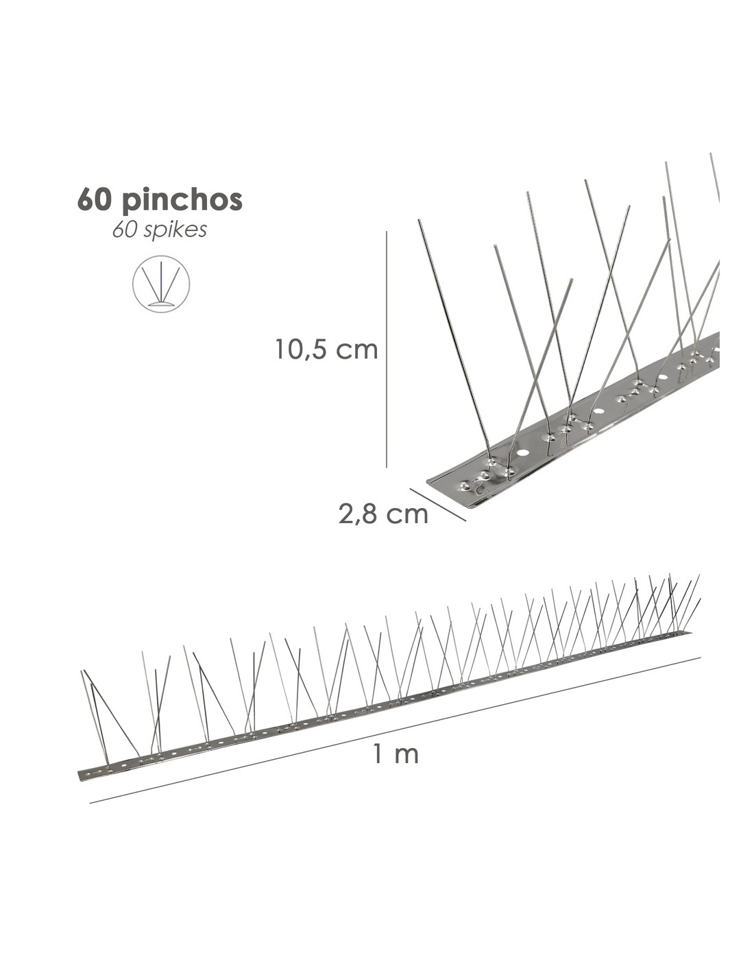 Pincho Anti Palomas / Pajaros 1 Metro Inoxidable Pincho Doble 60 Pinchos. Adaptable a Varias Posiciones
