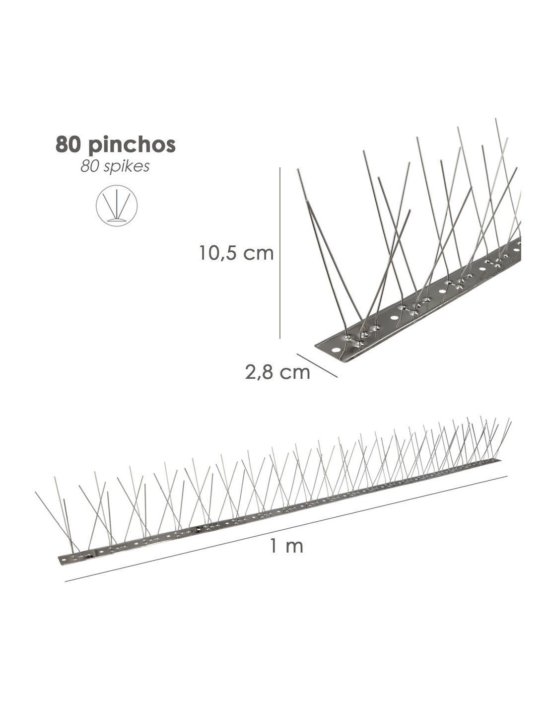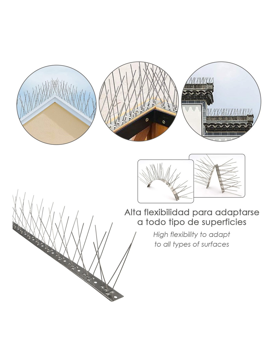 Pincho Anti Palomas / Pajaros 1 Metro Inoxidable Pincho Doble 80 Pinchos. Adaptable a Varias Posiciones