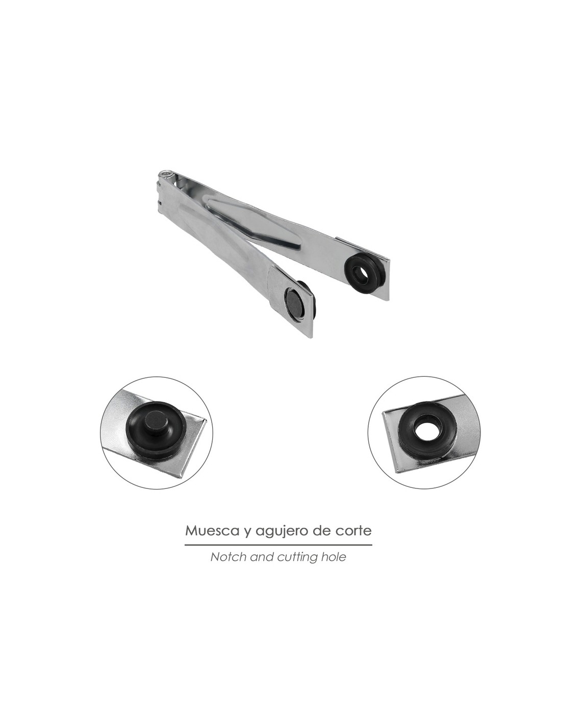- Articulo conocido como pinza ojales, pinza para ojetes, alicates ojales, alicates para ojetes.