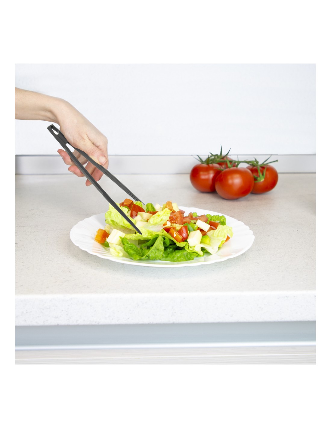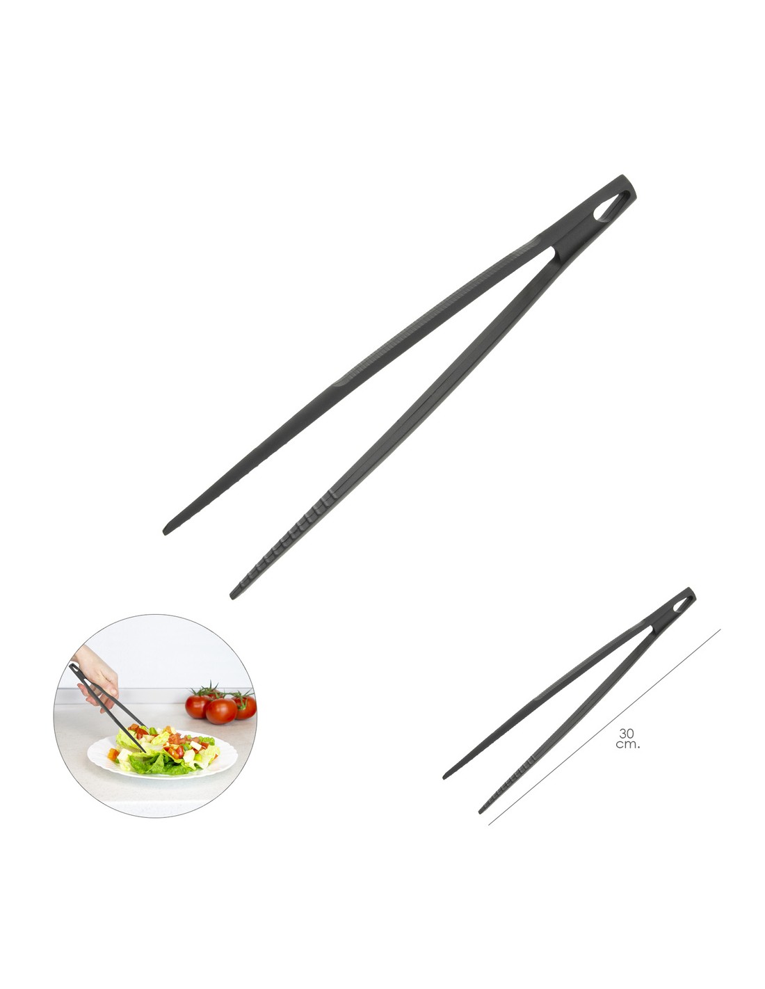 - Pinzas de cocina fabricadas en Nylon color negro.