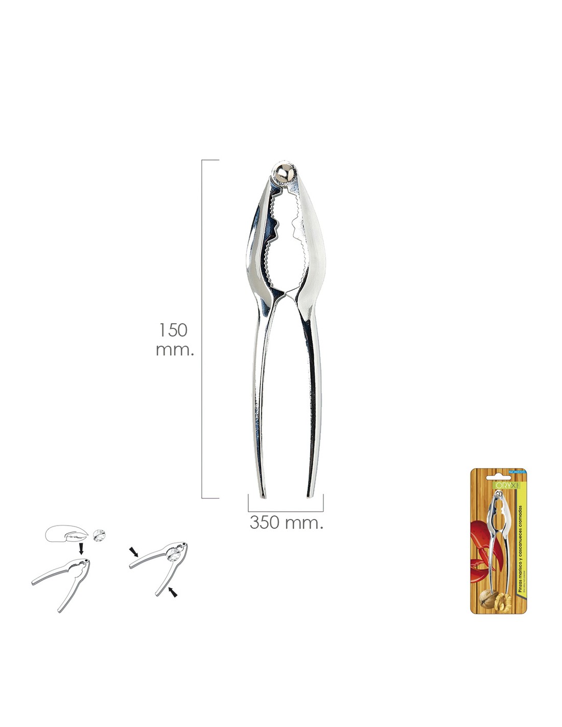 Alicates marisco y casca nueces cromadas. - Utensilio destinado tanto a abrir marisco o cascar nueces. - Acabado en acero inoxidable. - Gran presión. - Facilidad de uso.